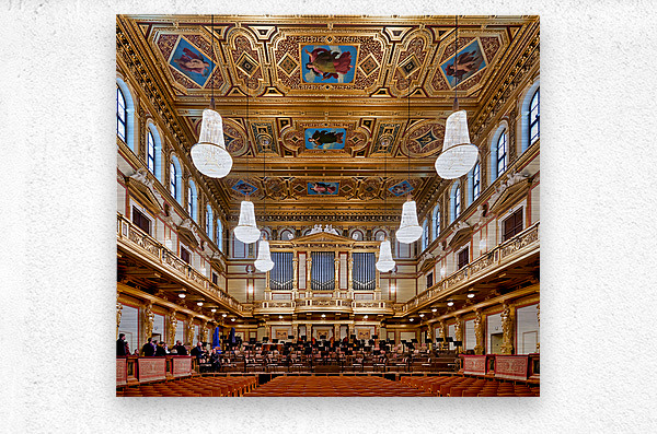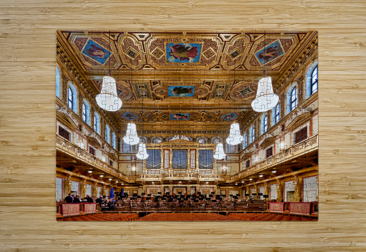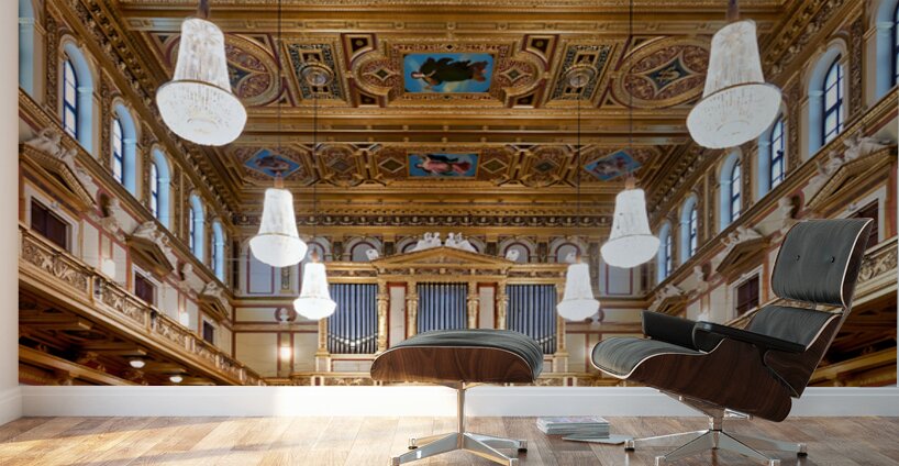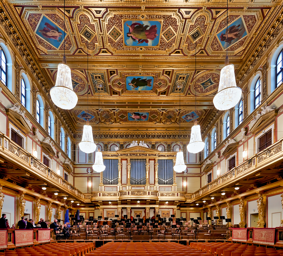 The Golden Hall of the Musikverein in Vienna Austria a world-renowned concert venue prepared for a classical music performance.