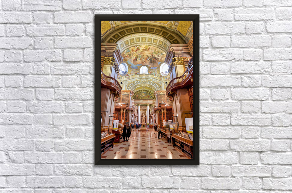Visitors explore the magnificent Baroque State Hall of the Austrian National Library in Vienna Austria admiring its frescoes statues and vast book col