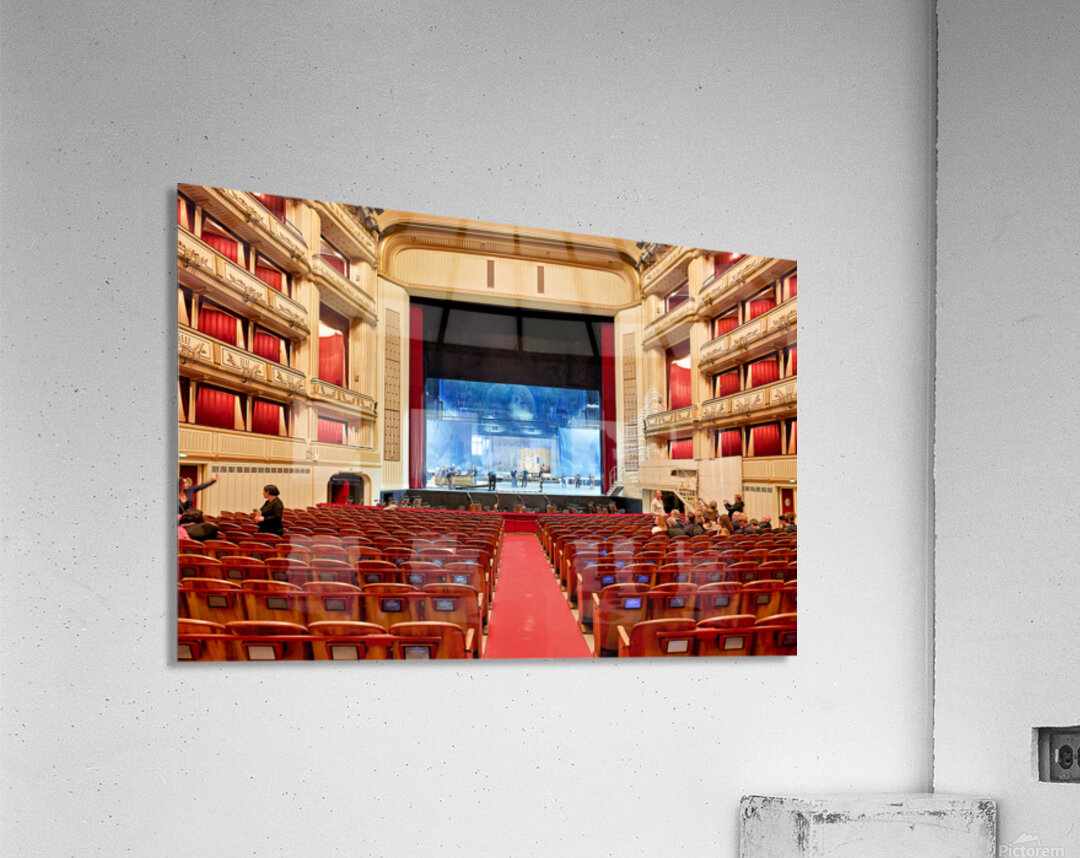 Ornate opera house interior with stage crew and audience. Picture Frame Printing