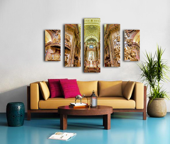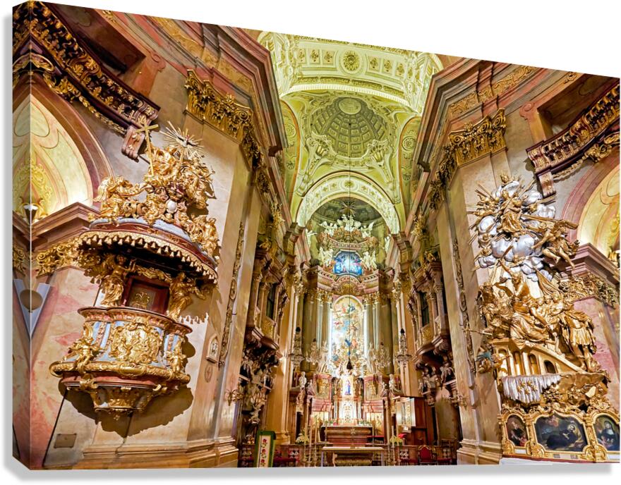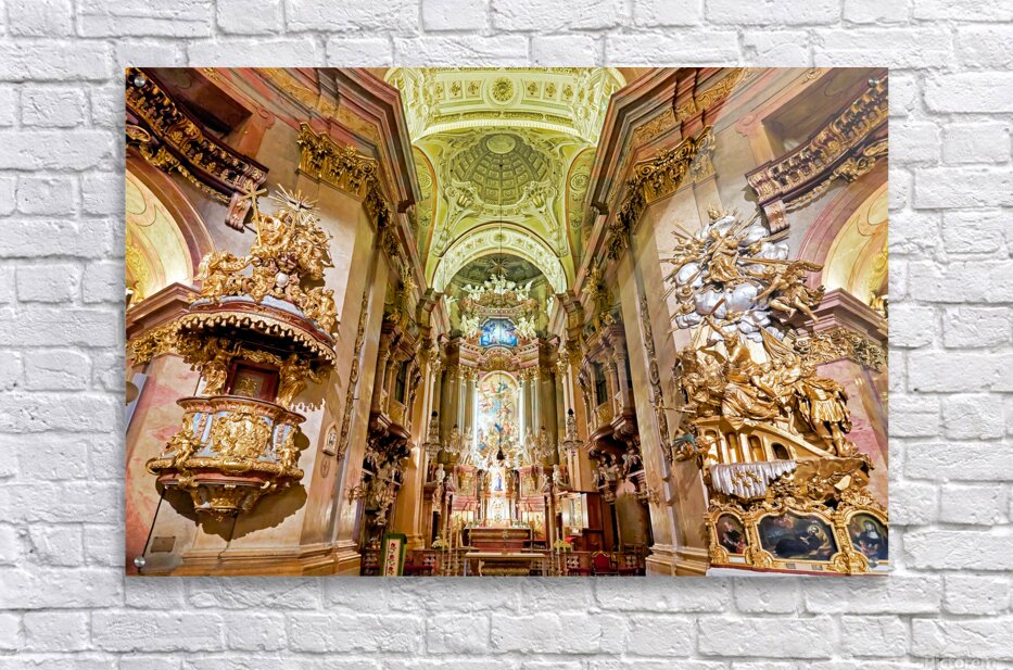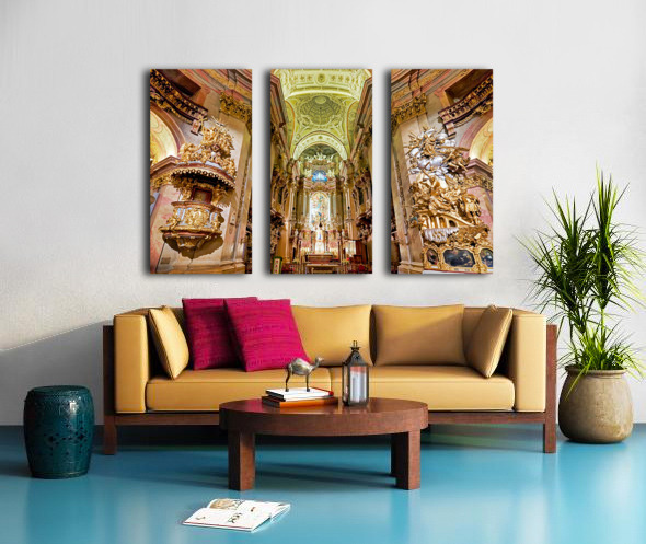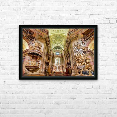 Stunning Baroque church interior rich with gold and religious a Picture Frame Printing