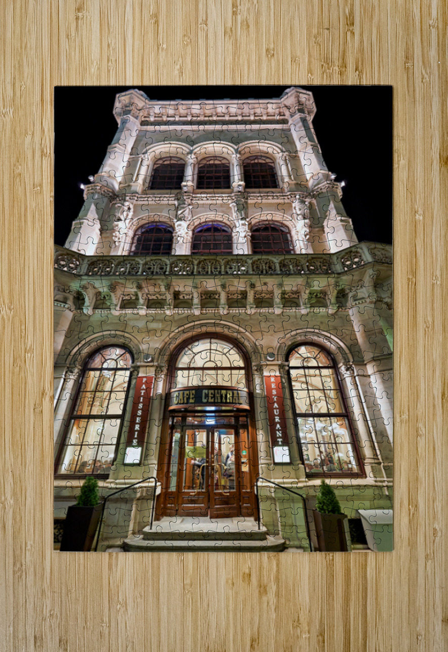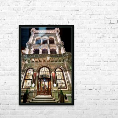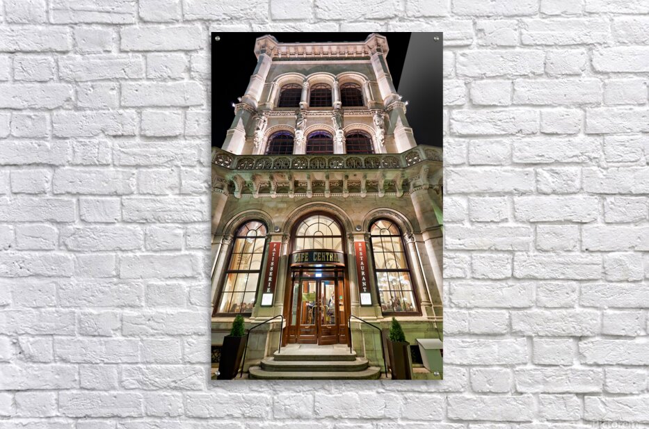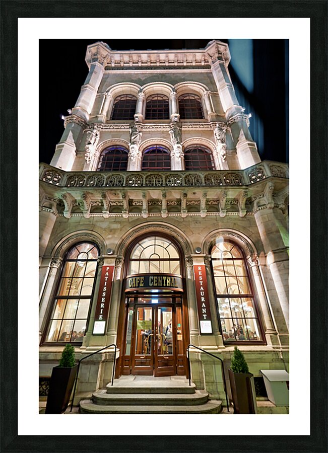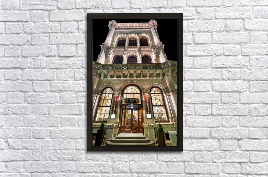 "Grand Cafe Central building illuminated at night." in a framed print.