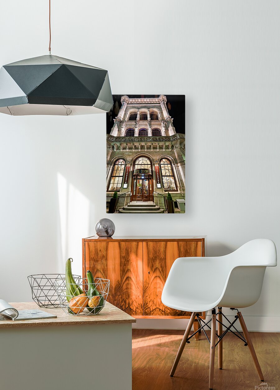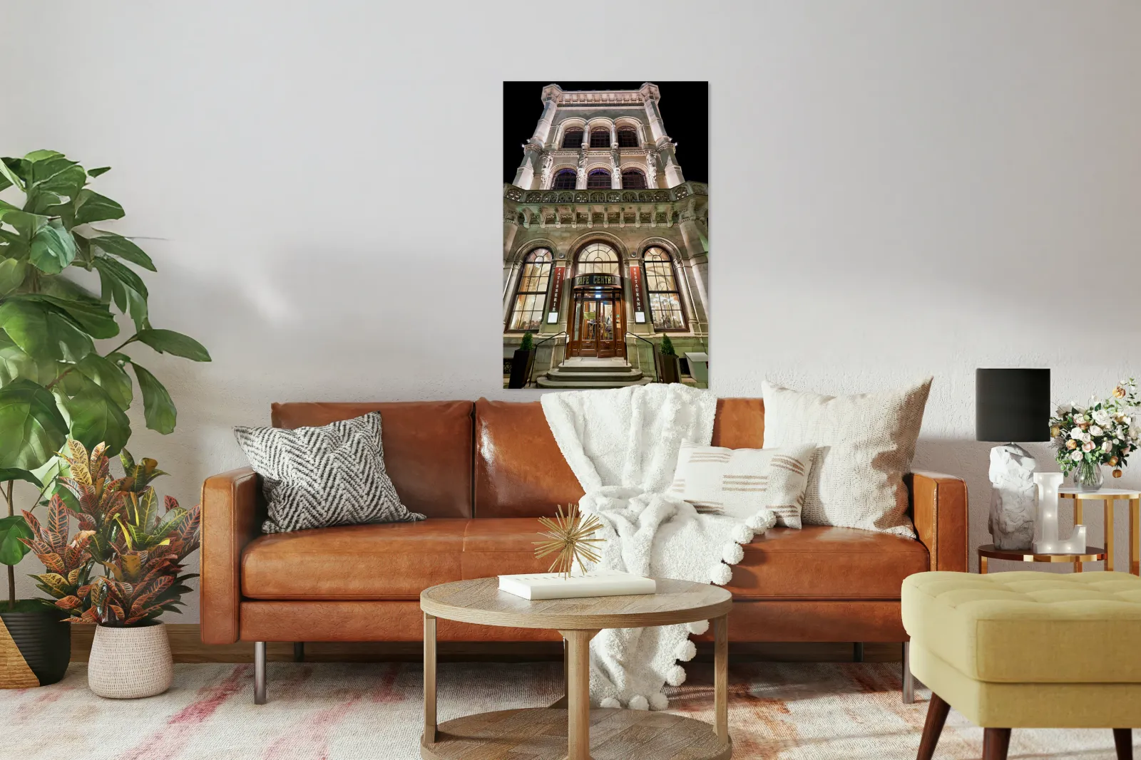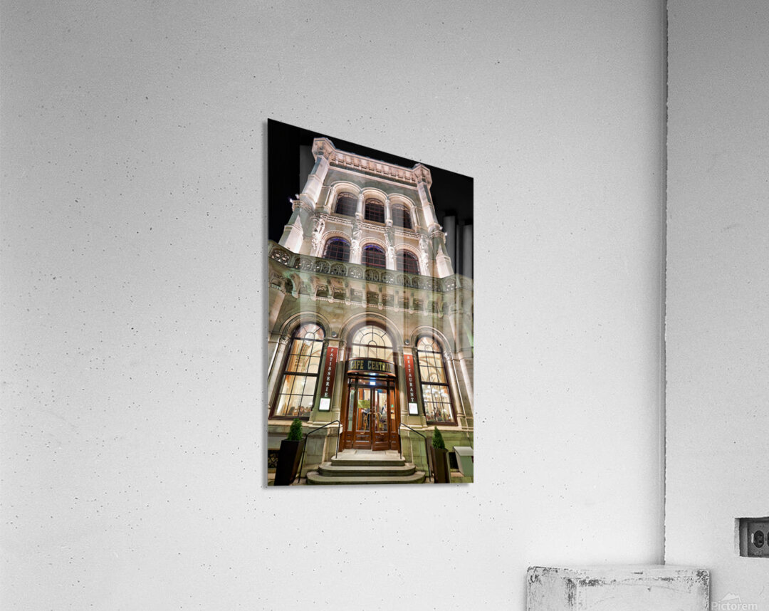 "Grand Cafe Central building illuminated at night." in a framed print.