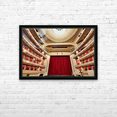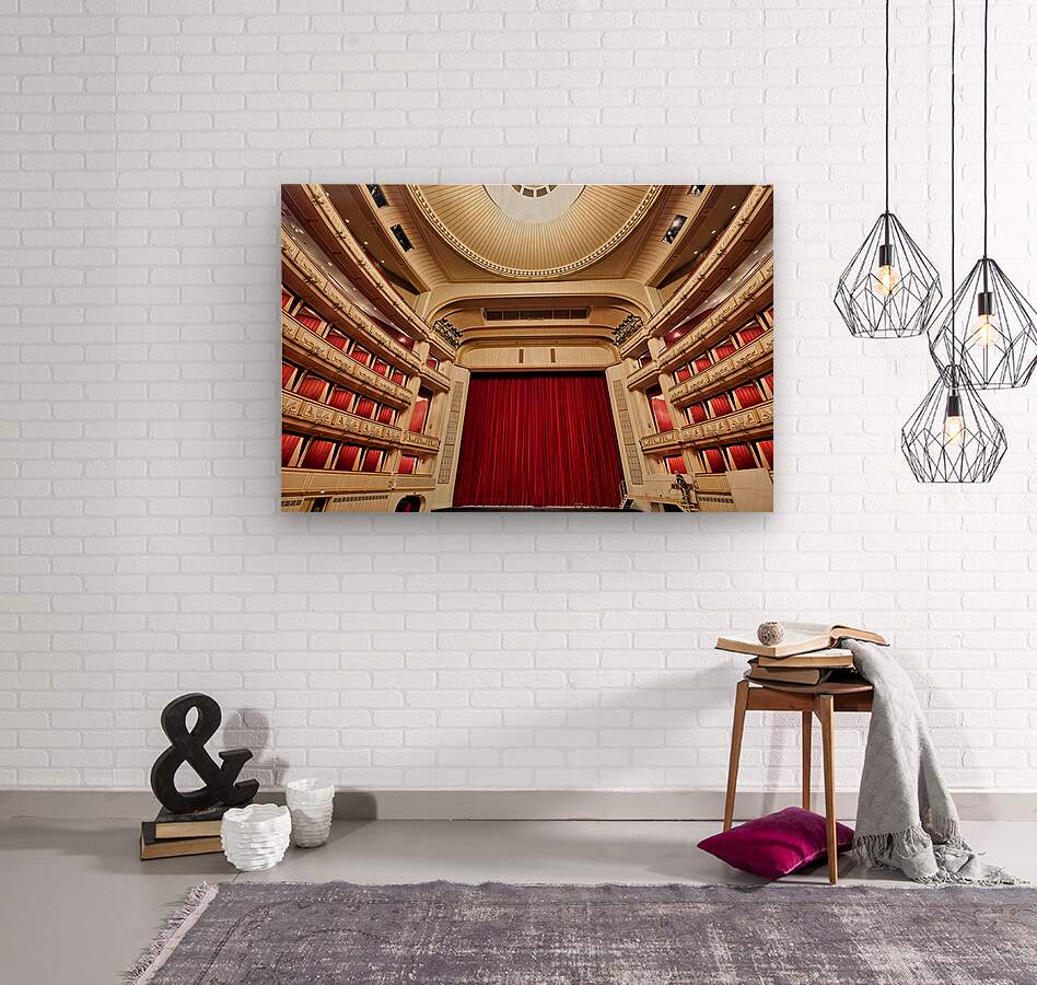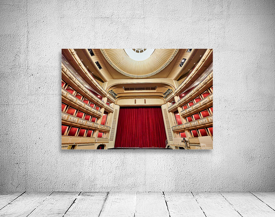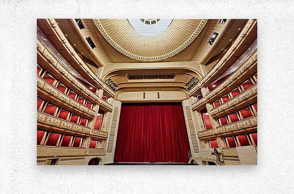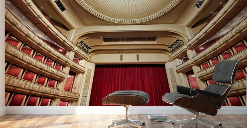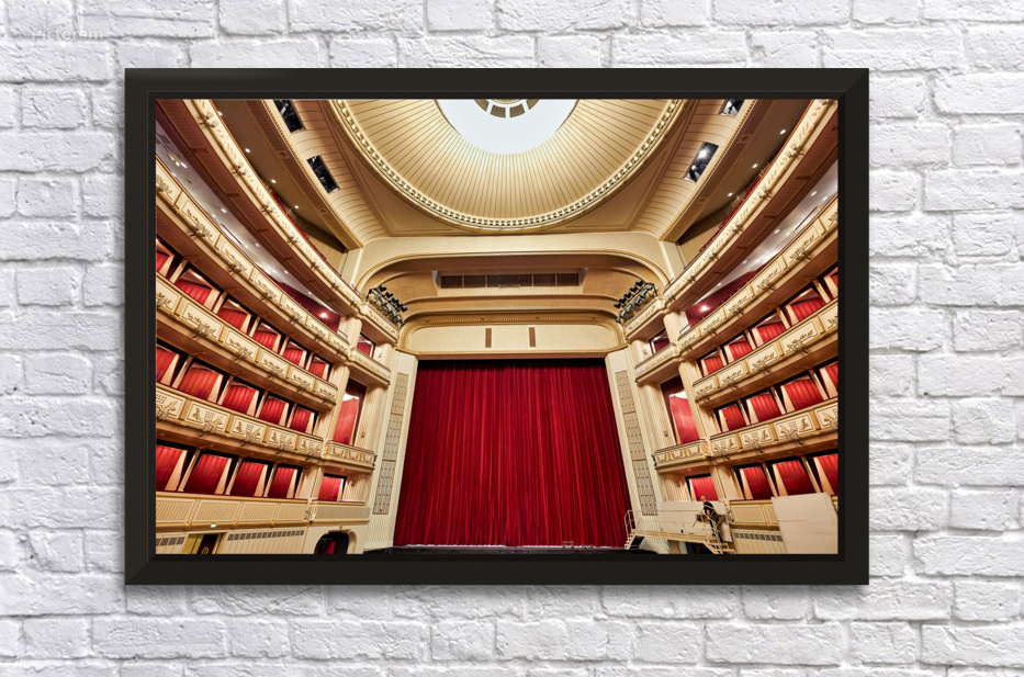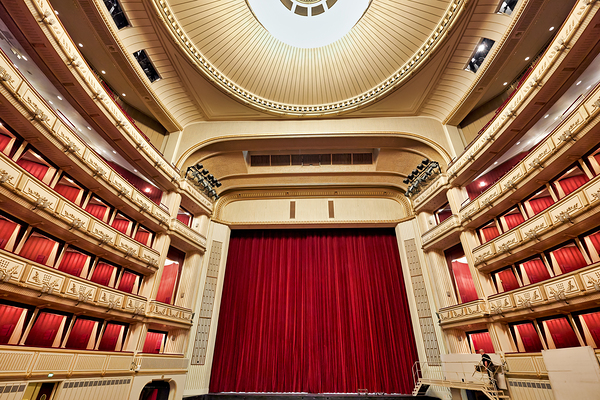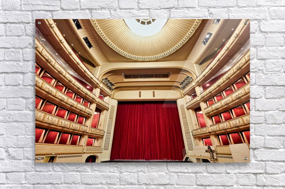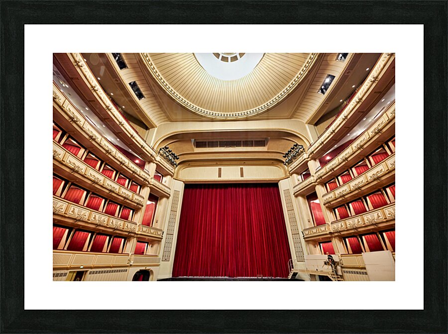 A stagehand walks on the side of the grand stage at the opulent Vienna State Opera in Vienna Austria preparing for a performance.
