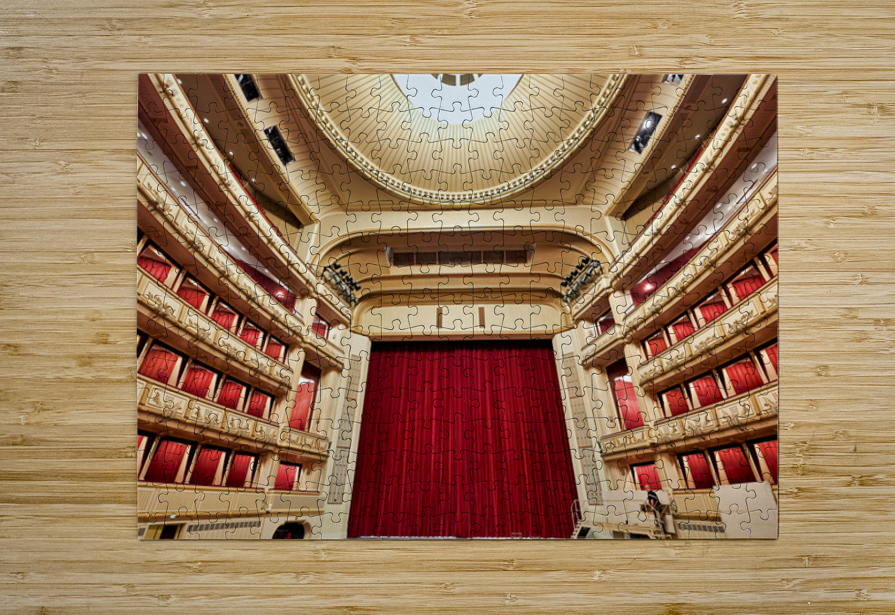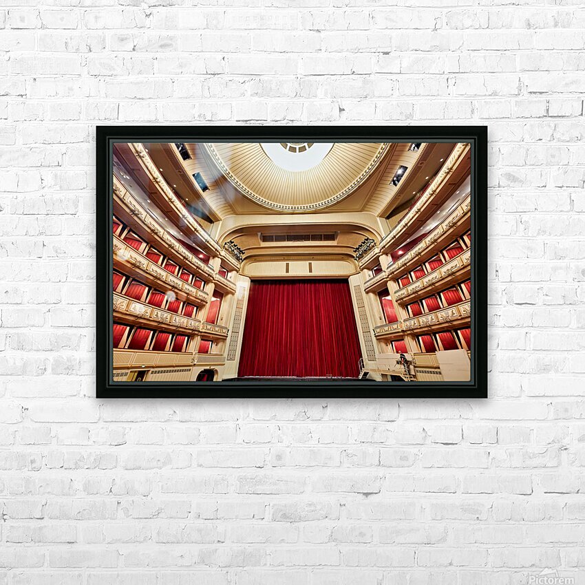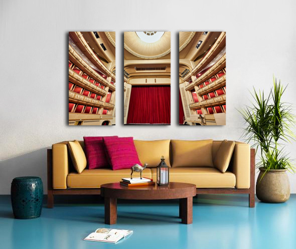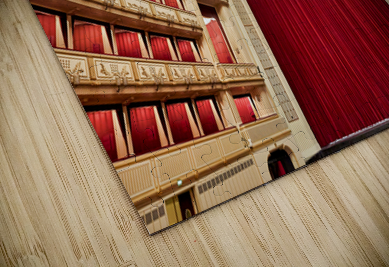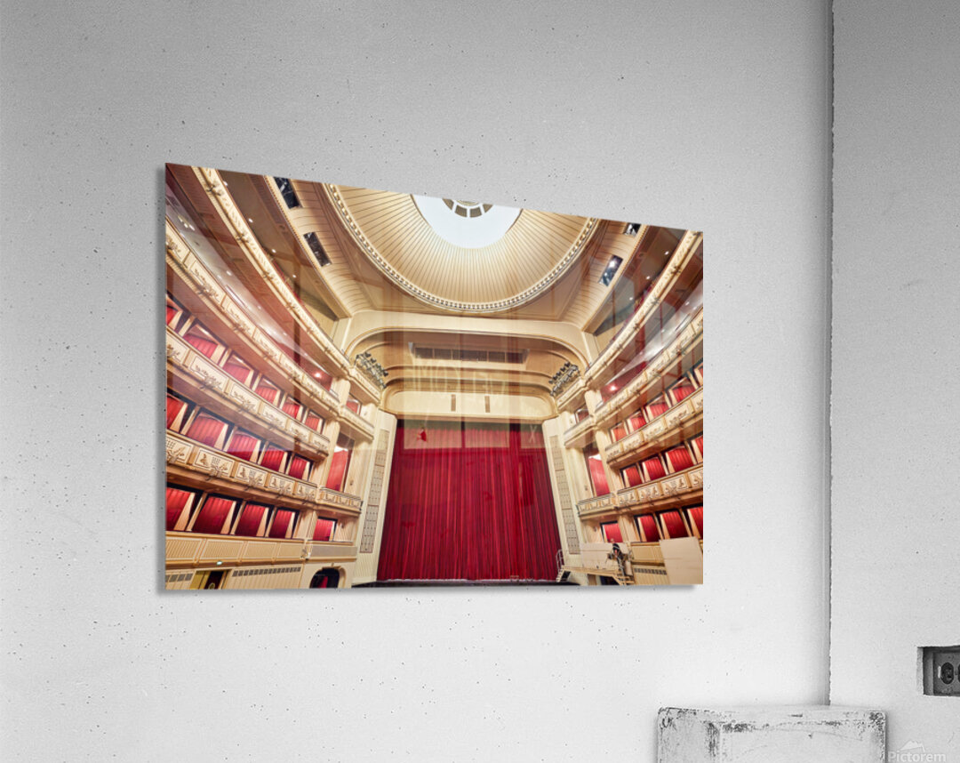 A stagehand walks on the side of the grand stage at the opulent Vienna State Opera in Vienna Austria preparing for a performance.