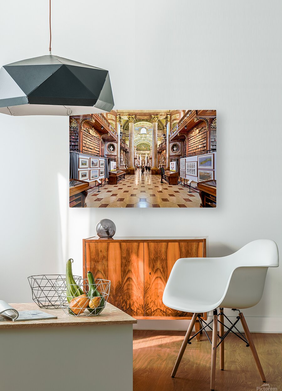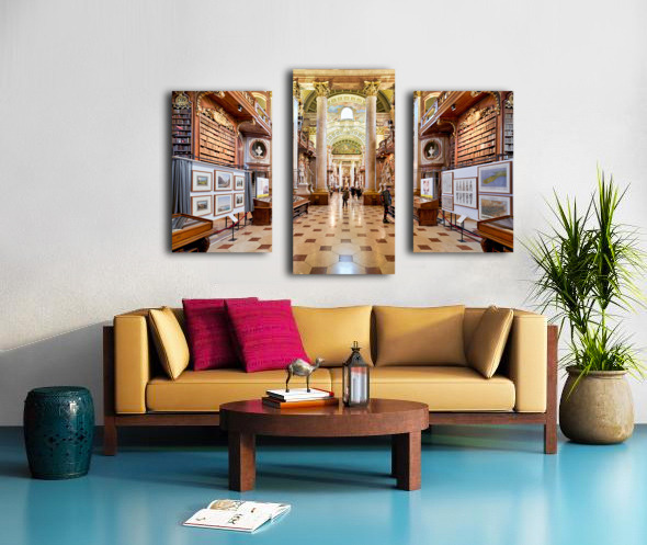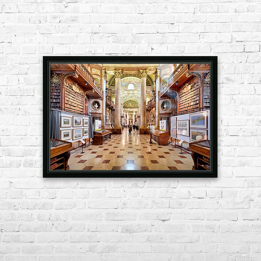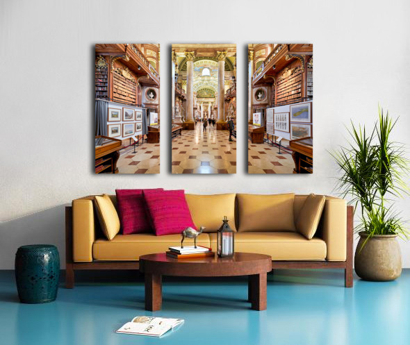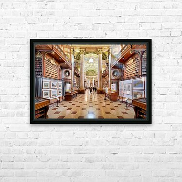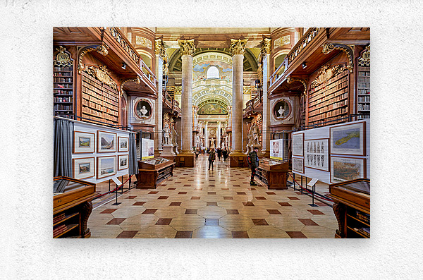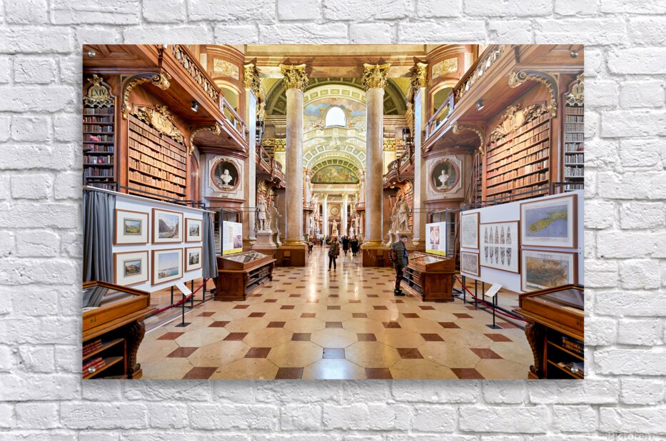 Get this artwork "Grand ornate library interior with books columns and visitors" in a framed print.