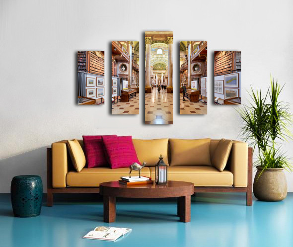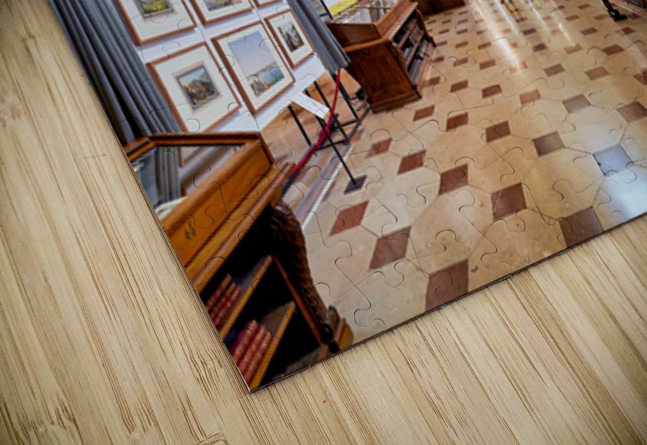 Grand ornate library interior with books columns and visitors Marco Brivio Puzzle printing