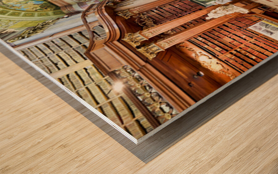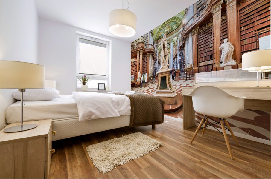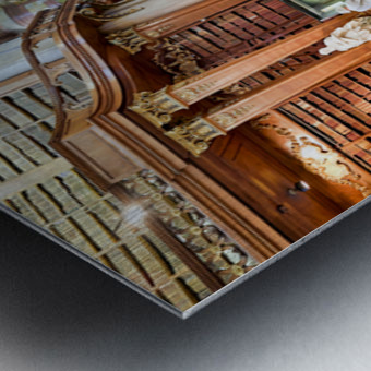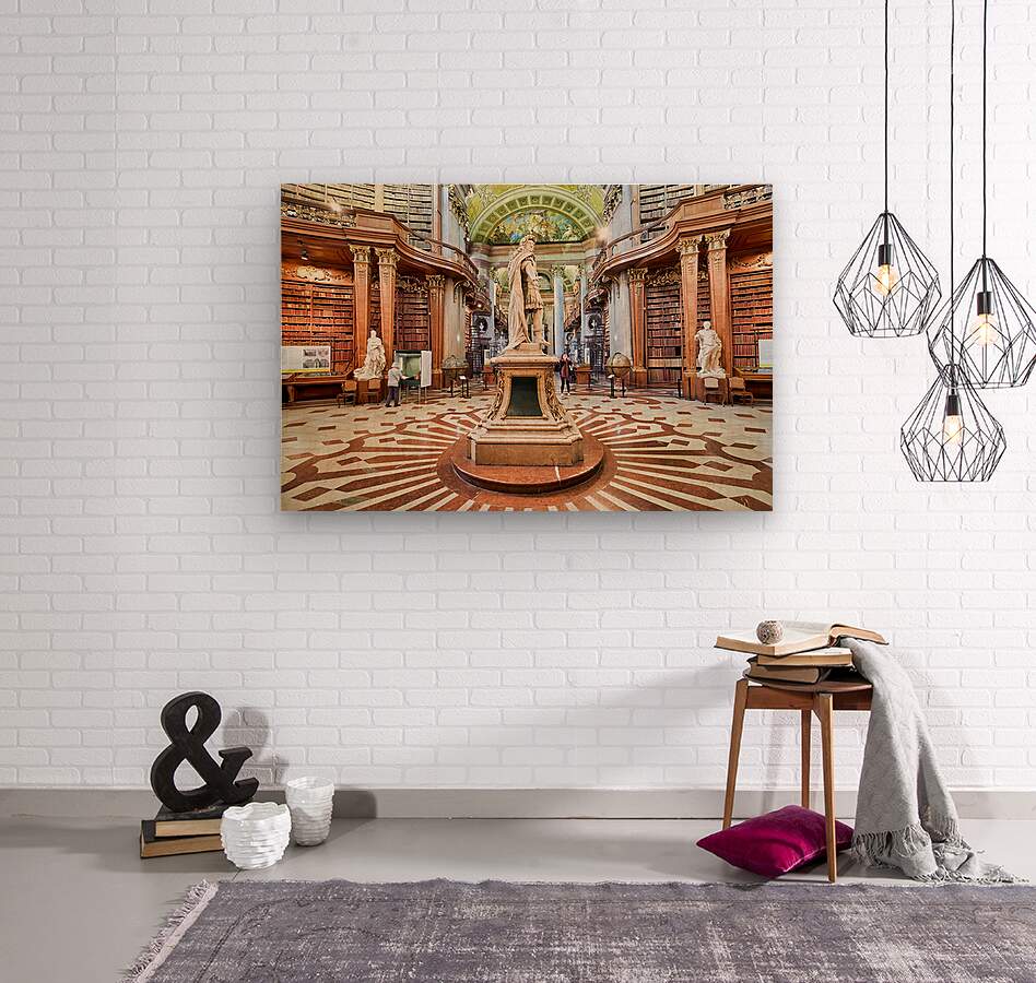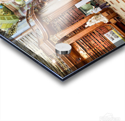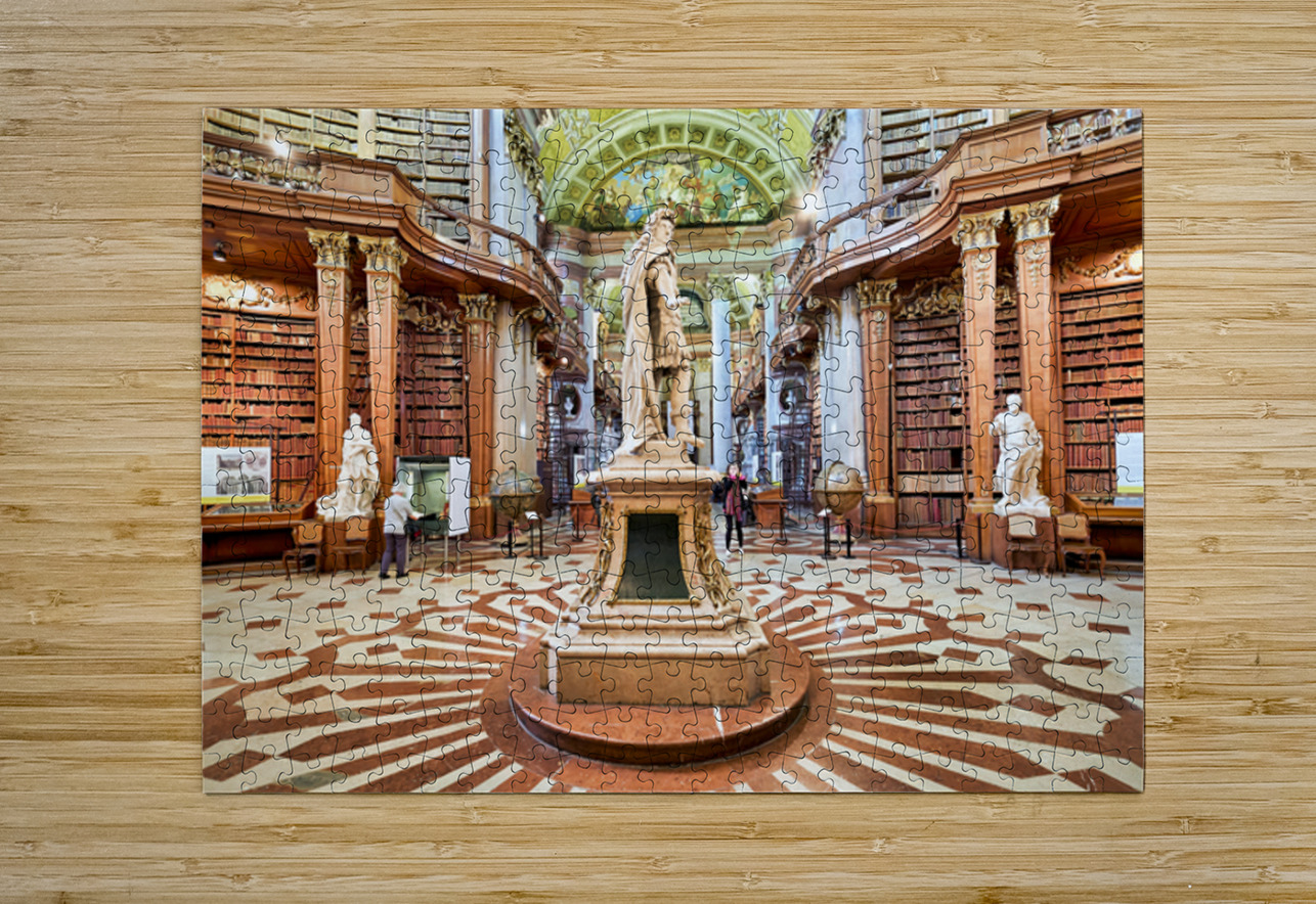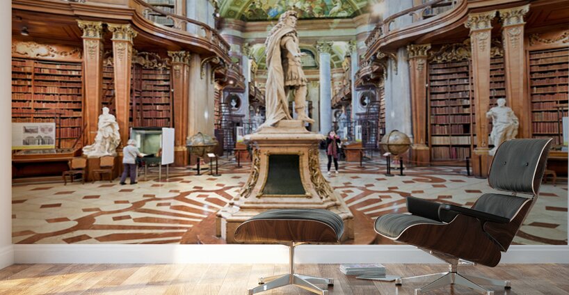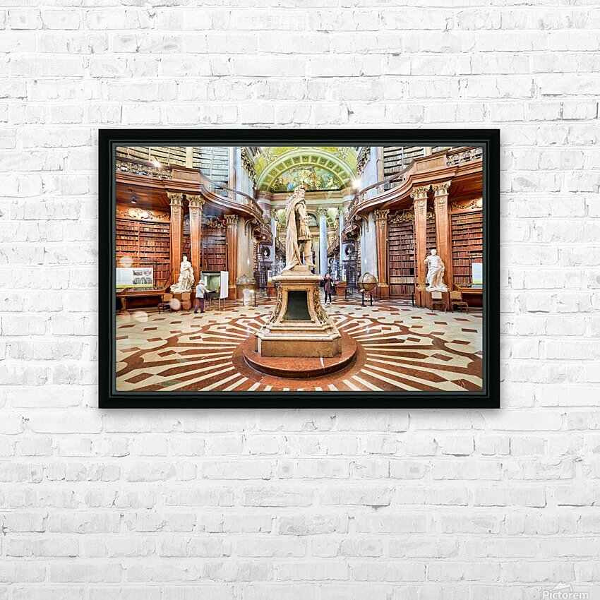 "Magnificent baroque library interior with statues books and vi" in a framed print.