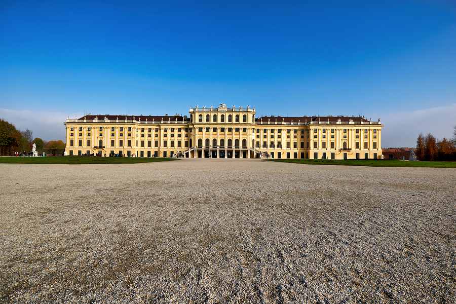 Tourists visit Schönbrunn Palace in Vienna Austria a grand Baroque imperial summer residence enjoying its historic architecture and grounds.