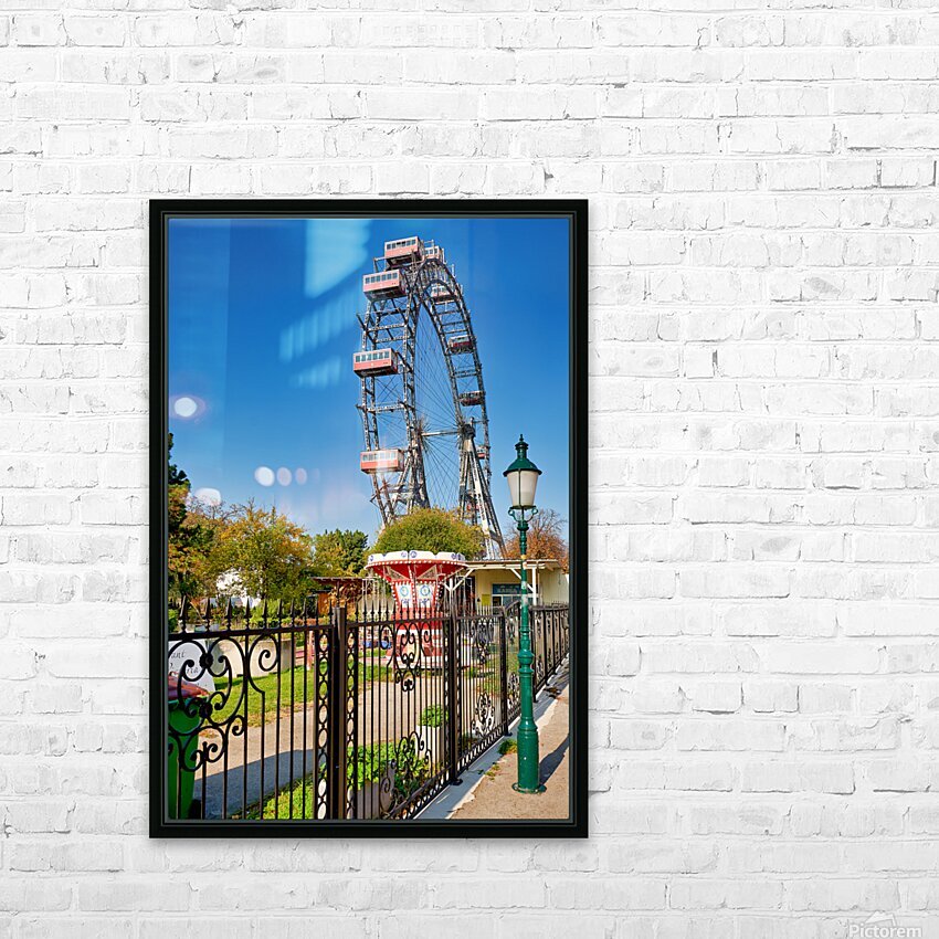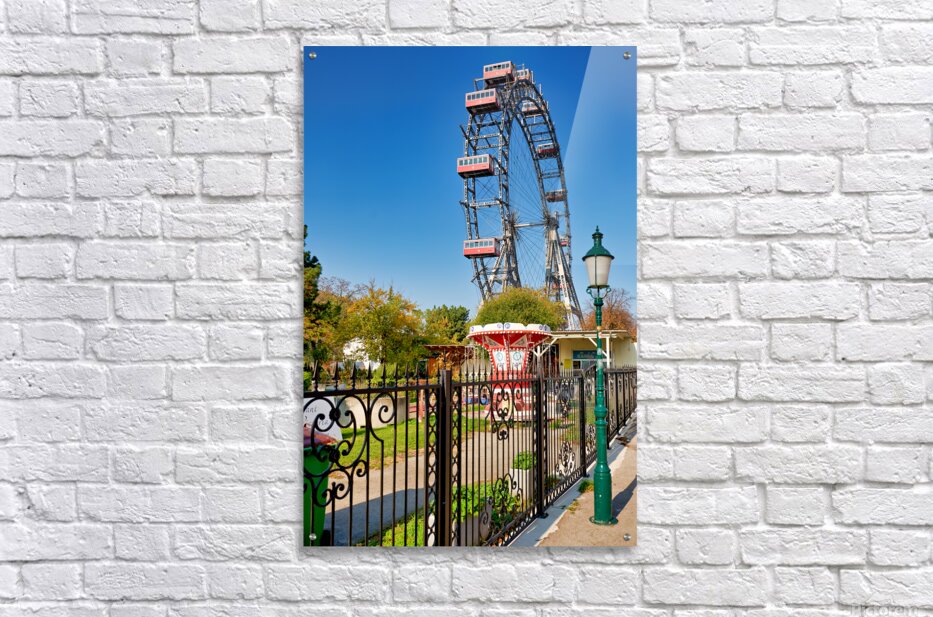 Prater Ferris wheel and carousel under a clear blue sky. Picture Frame Printing
