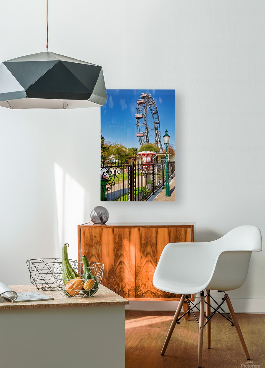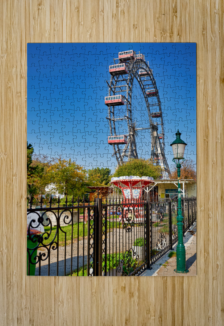 Prater Ferris wheel and carousel under a clear blue sky. Marco Brivio Puzzle printing