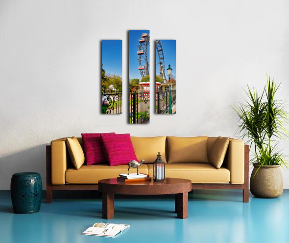 Prater Ferris wheel and carousel under a clear blue sky. Frame print