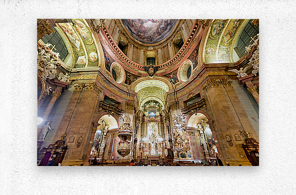 Visitors admire the opulent Baroque interior of St. Peters Church Peterskirche in Vienna Austria a masterpiece of religious art.