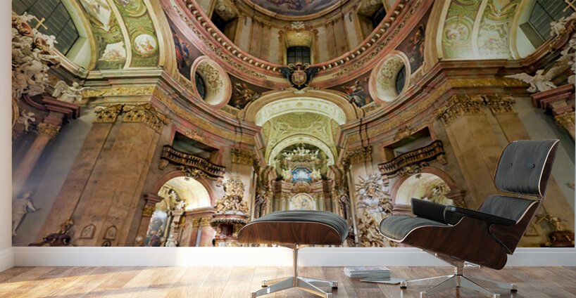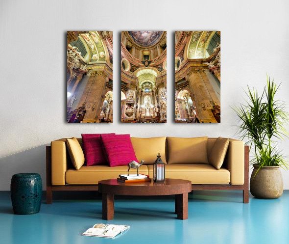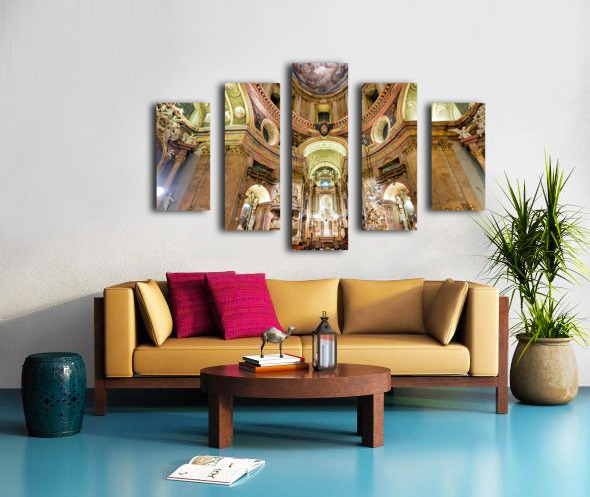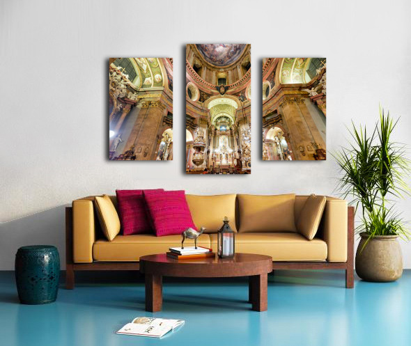 Get this artwork "Grand Baroque church interior richly decorated with frescoes an" in a framed print.