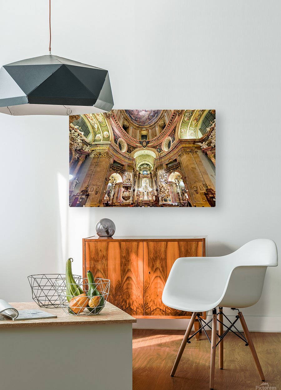 Grand Baroque church interior richly decorated with frescoes an Picture Frame Printing