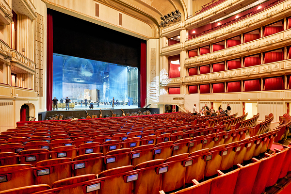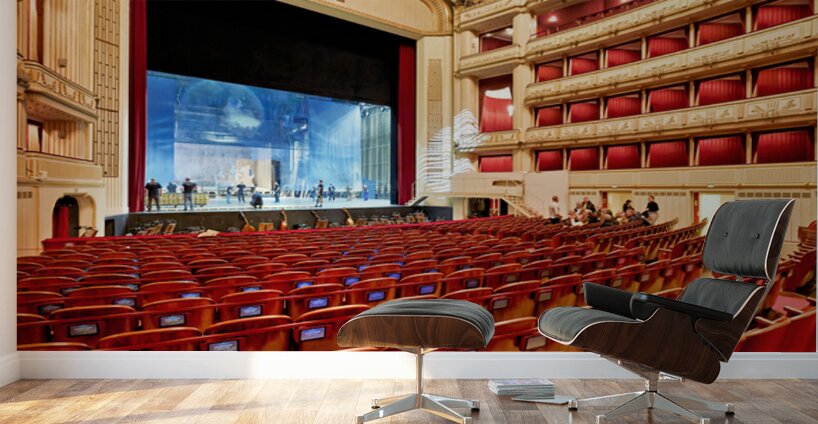 Stage crew prepares for Donizettis LElisir dAmore at the Vienna State Opera Austria as early audience members arrive.