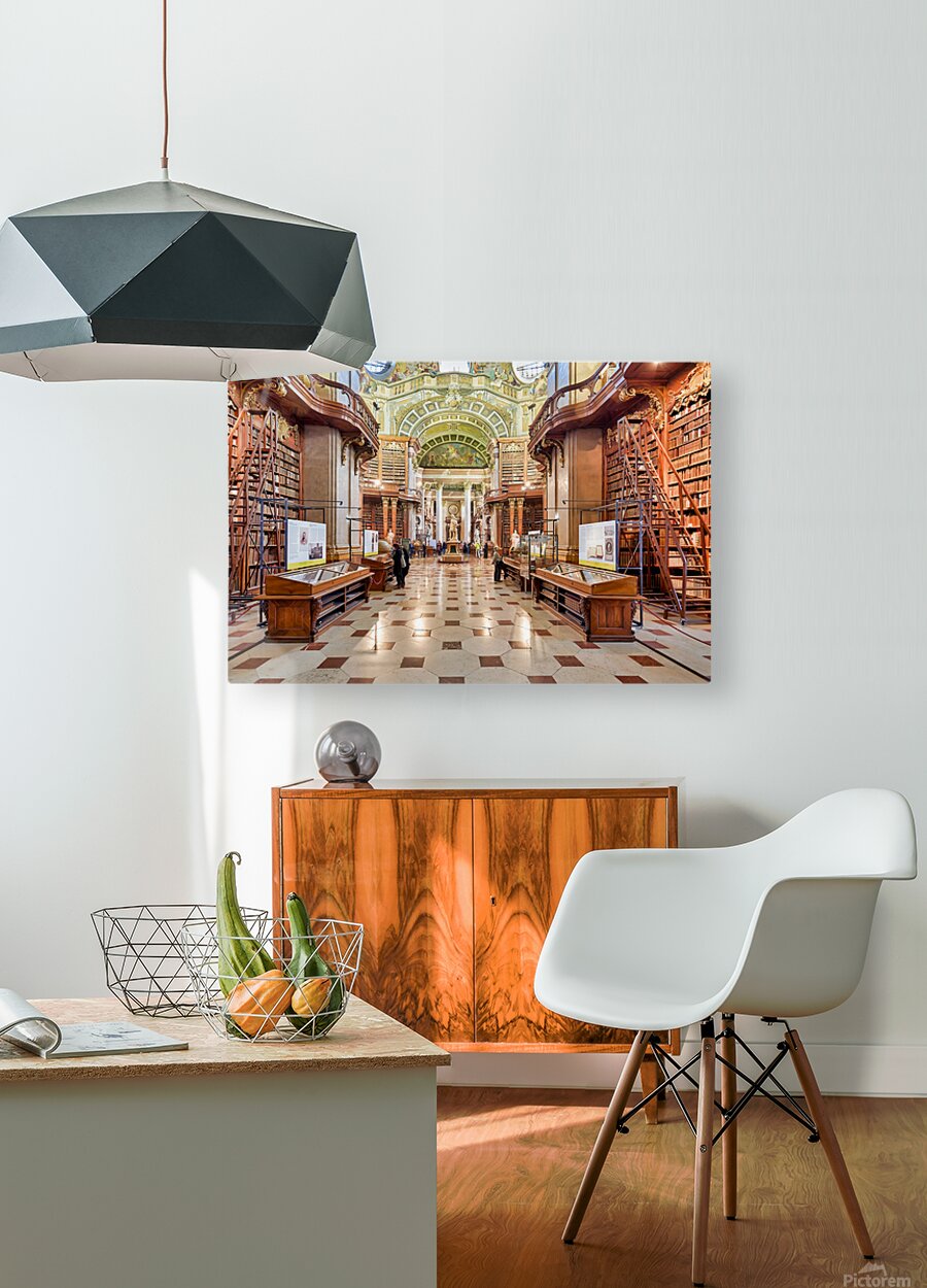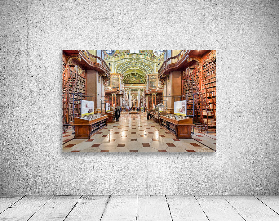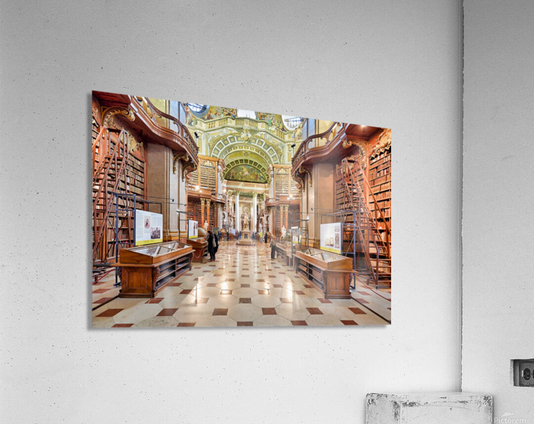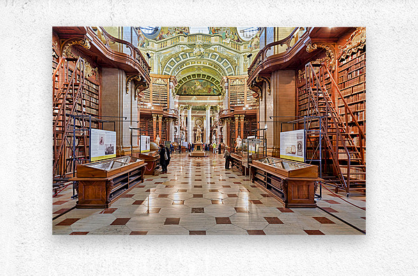 Visitors explore the magnificent Baroque State Hall of the Austrian National Library in Vienna admiring its vast collection of books and historical ex