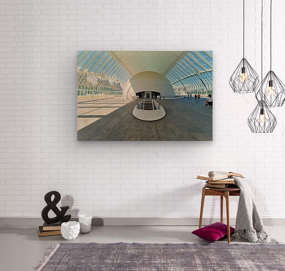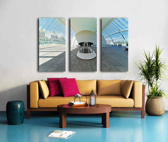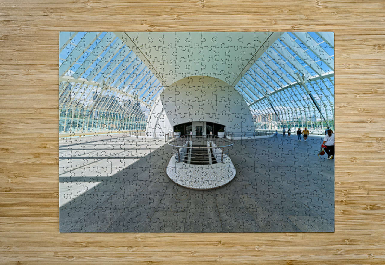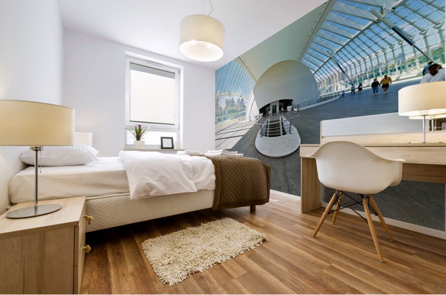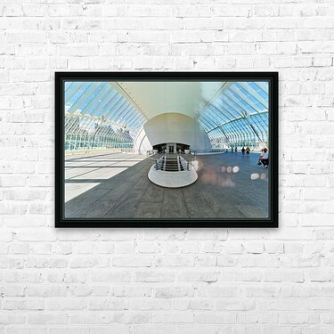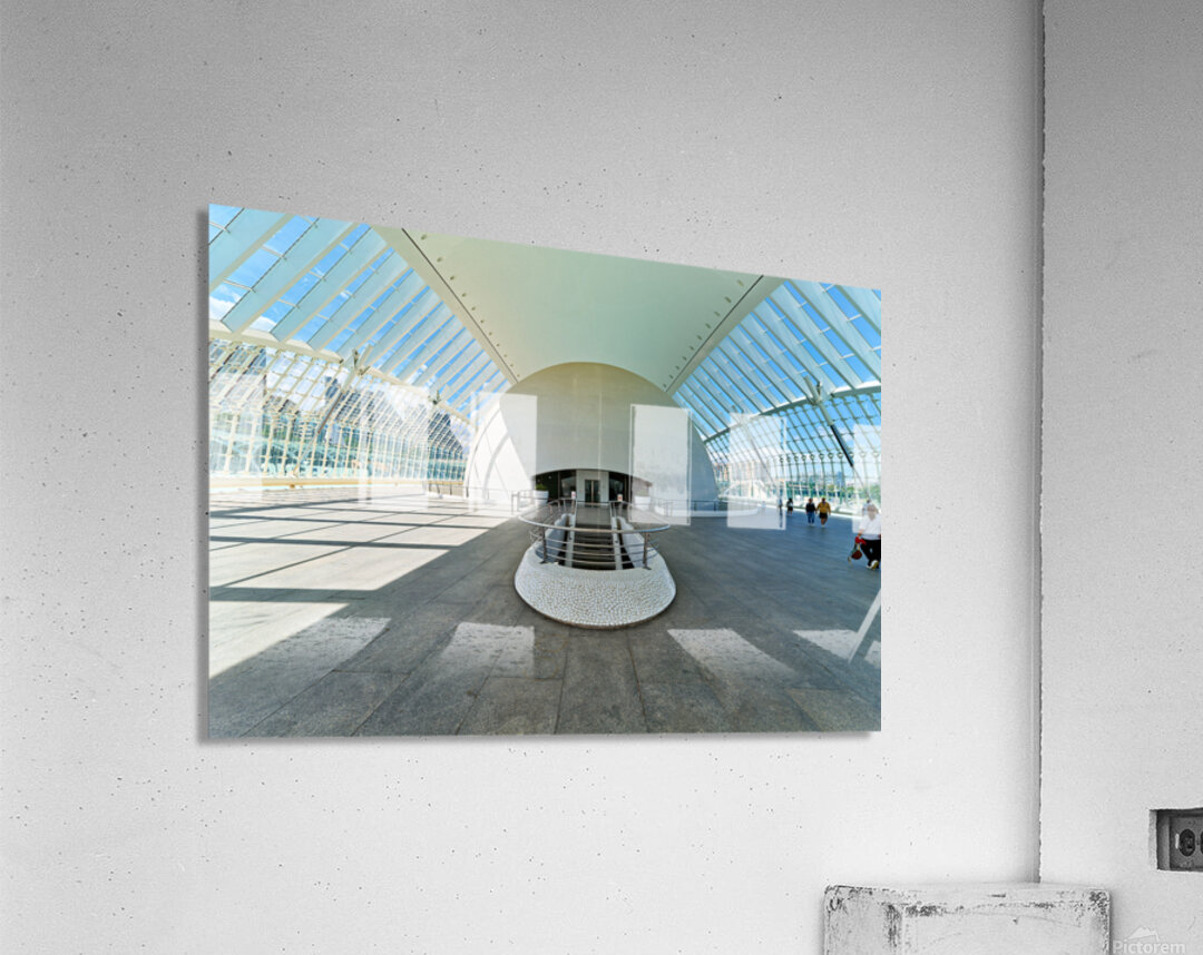 People explore the Hemisferic in Valencia Spain. The modern architecture stands out in the city landscape. Sunlight fills the space.