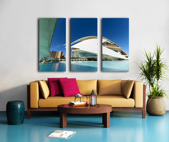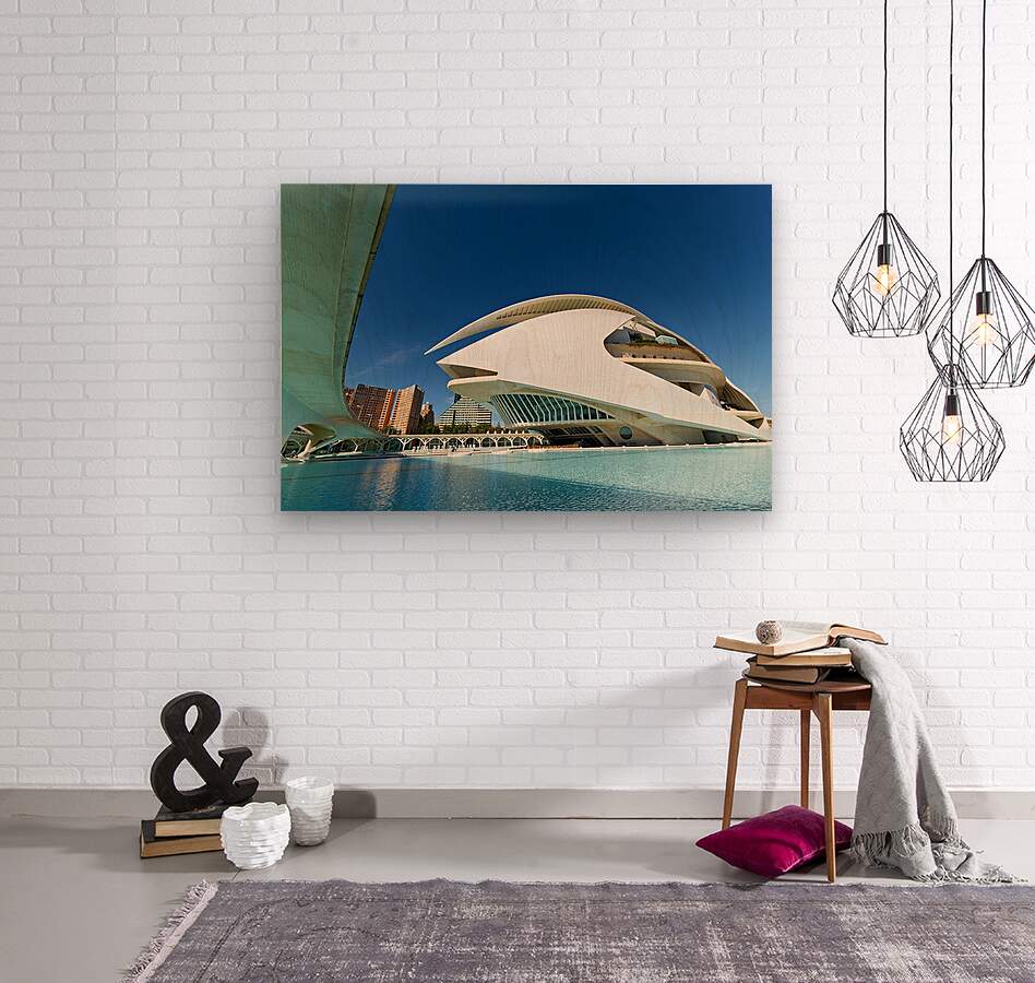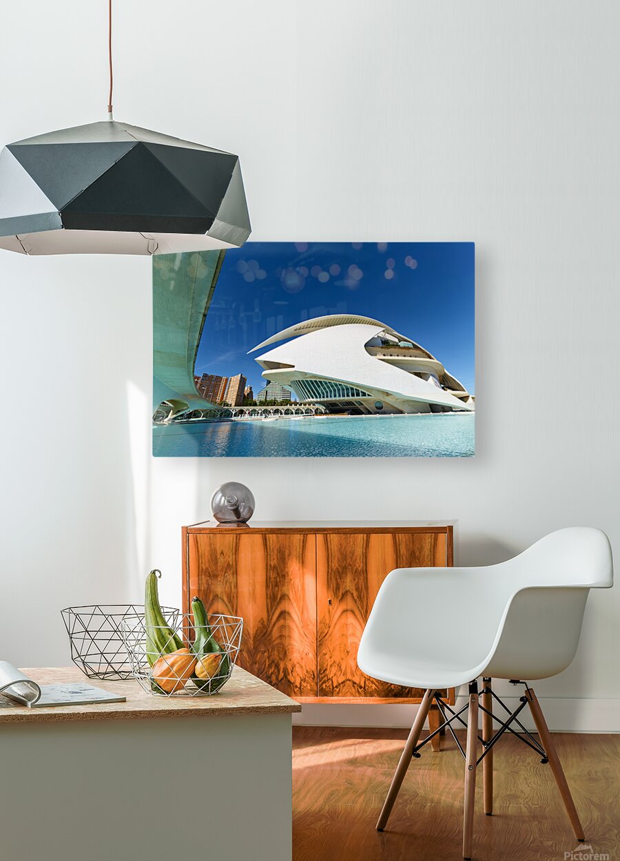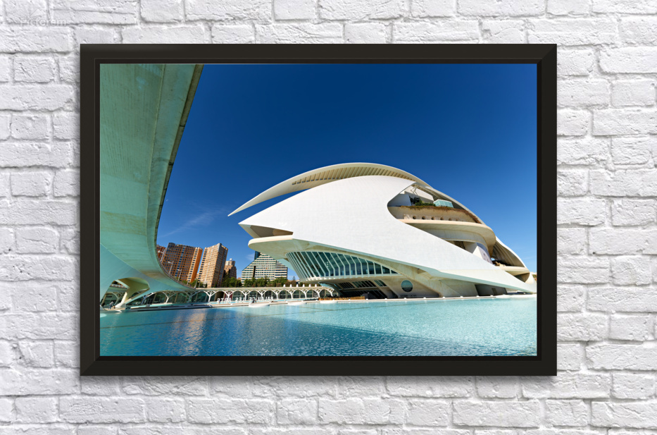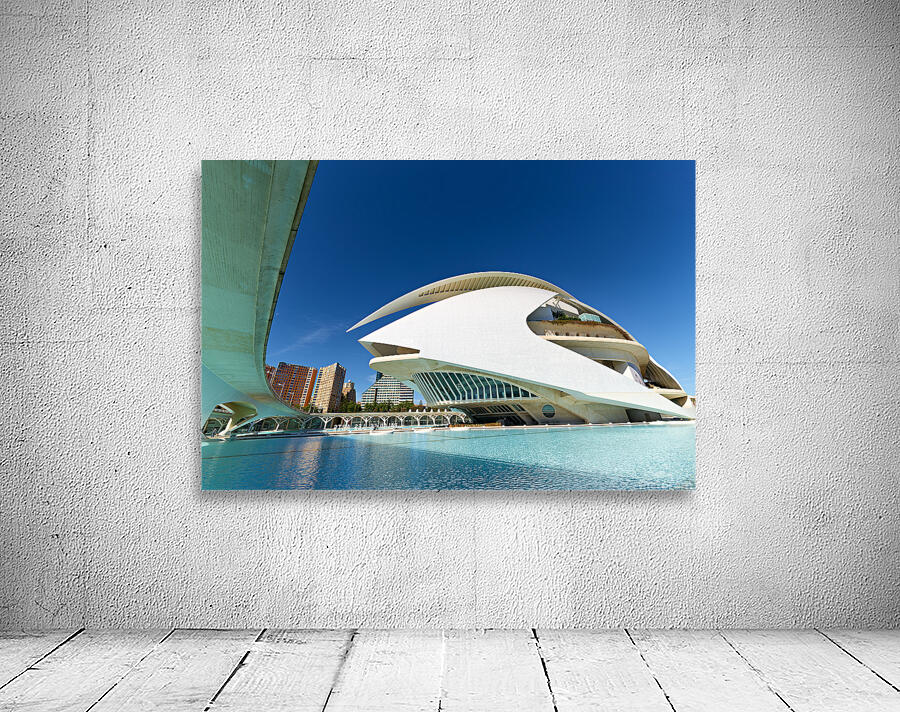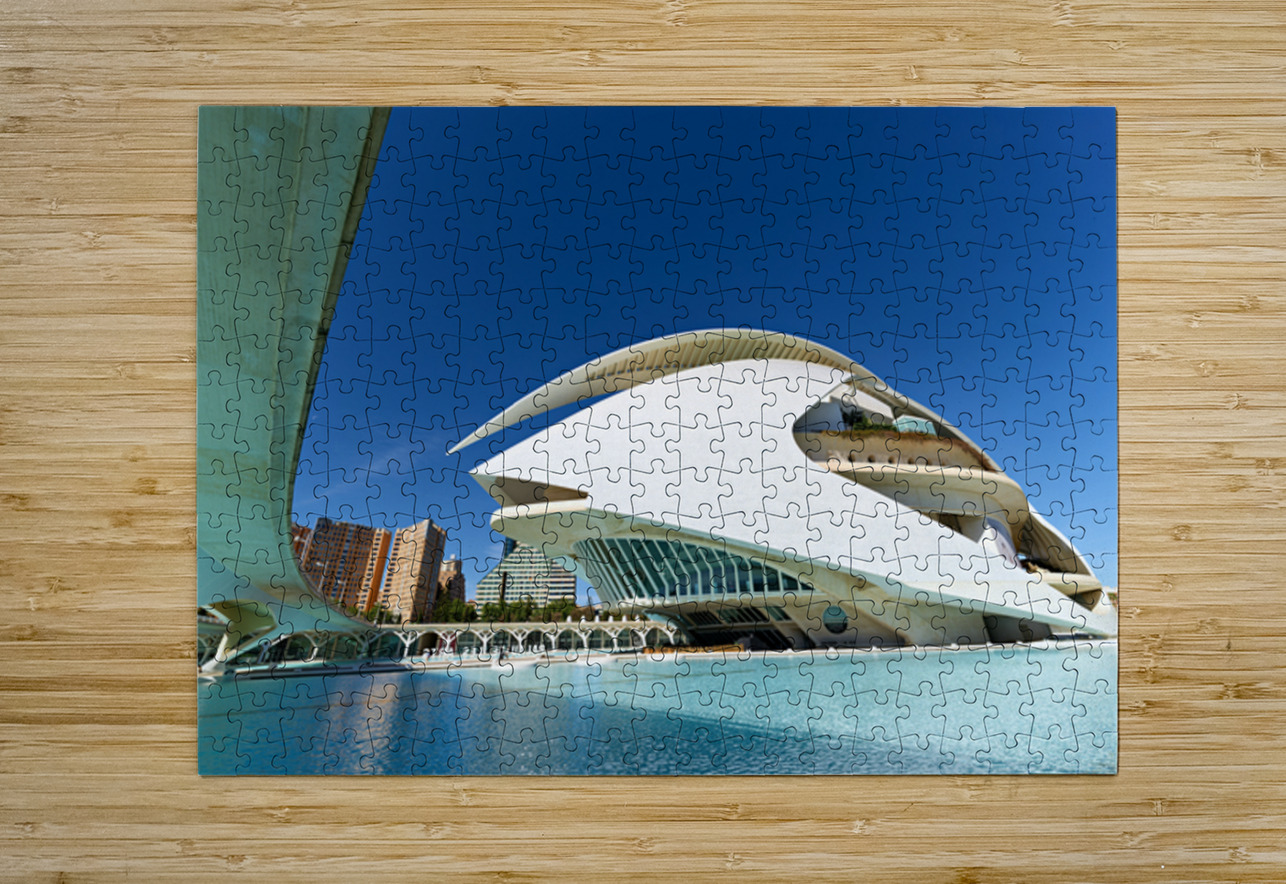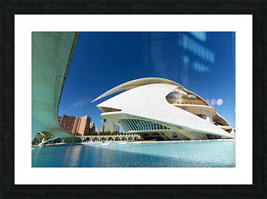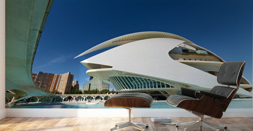 Palau de les Arts Reina Sofia stands in Valencia near water with clear sky. People visit the area to enjoy the architecture and surroundings.