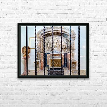 "Visit Valencia Cathedral for a unique altar display" in a framed print.