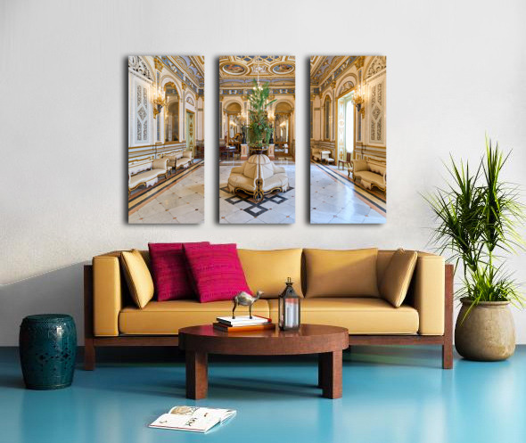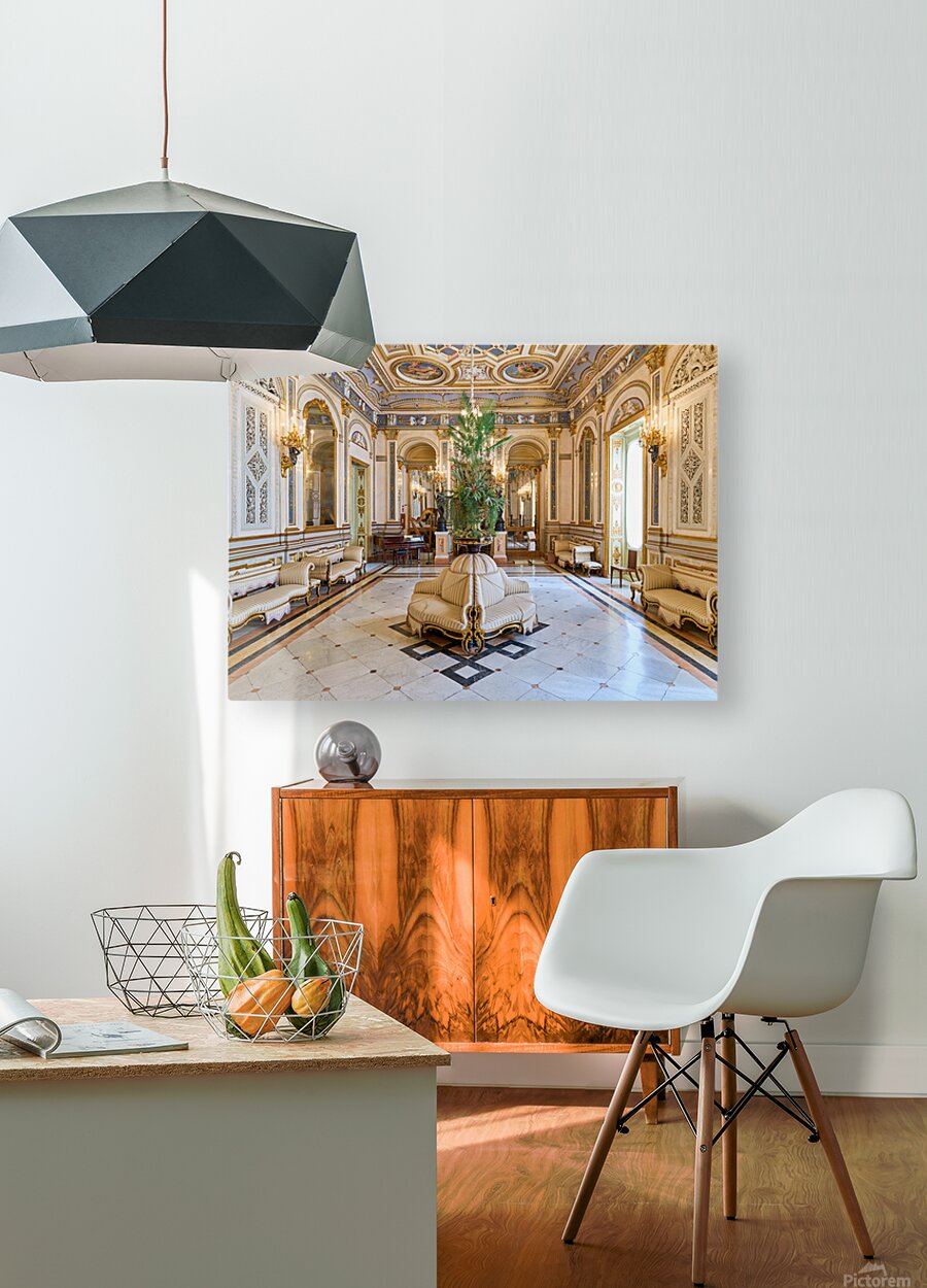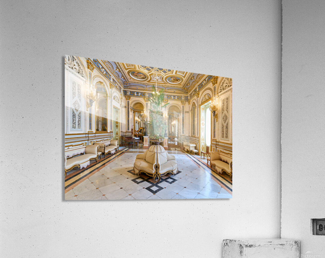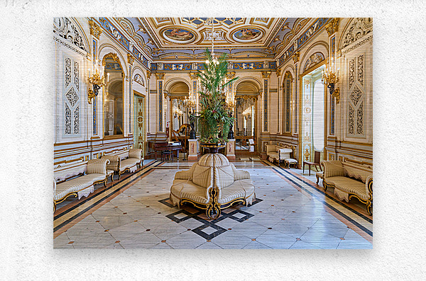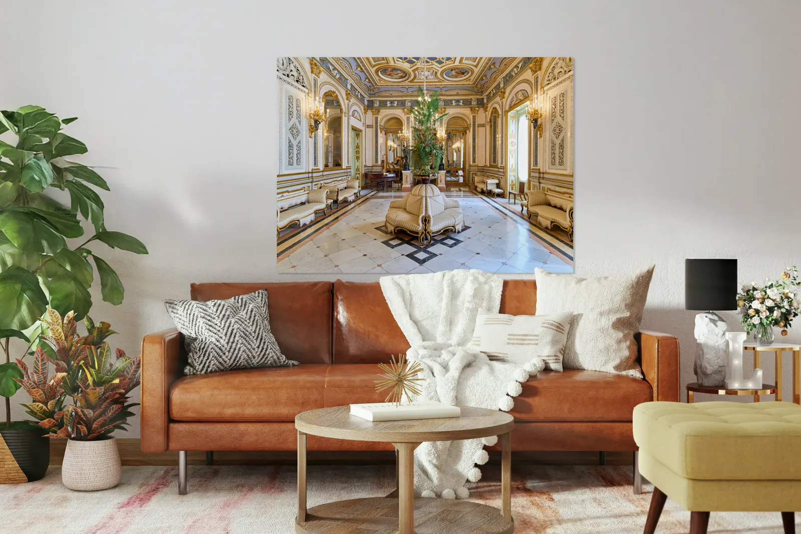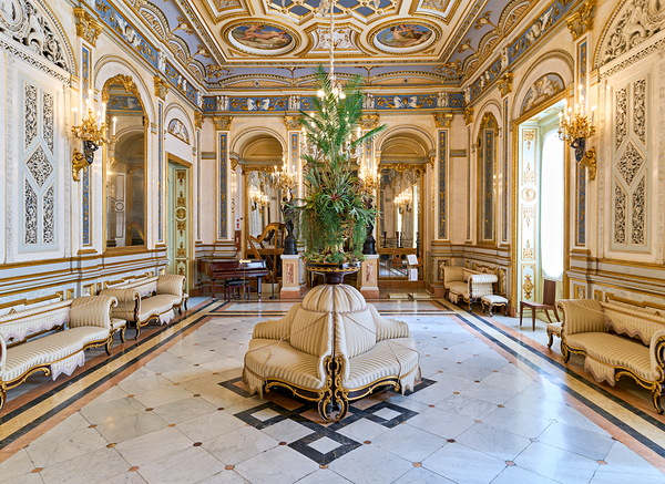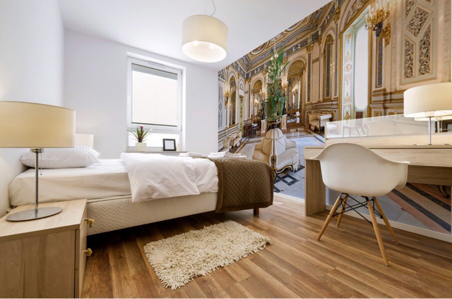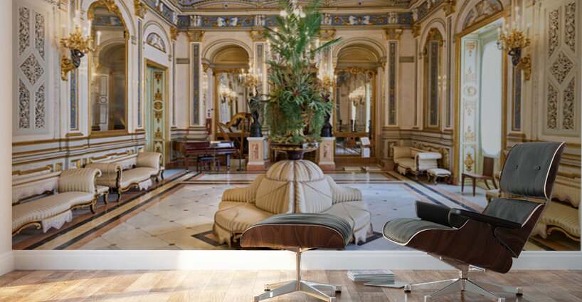 Visitors explore the opulent interior of the National Museum of Ceramics and Decorative Arts in Valencia Spain showcasing rich history and design.