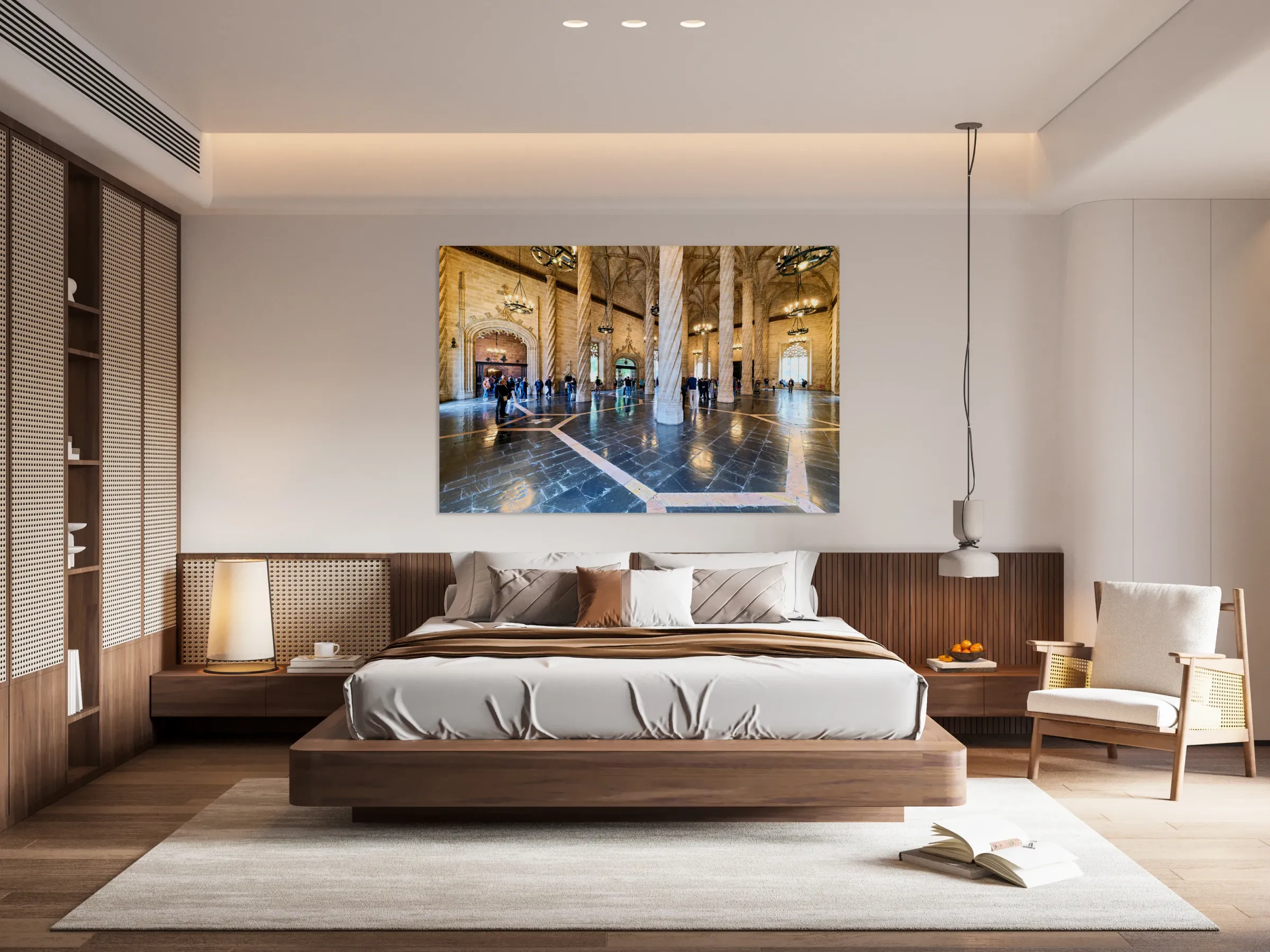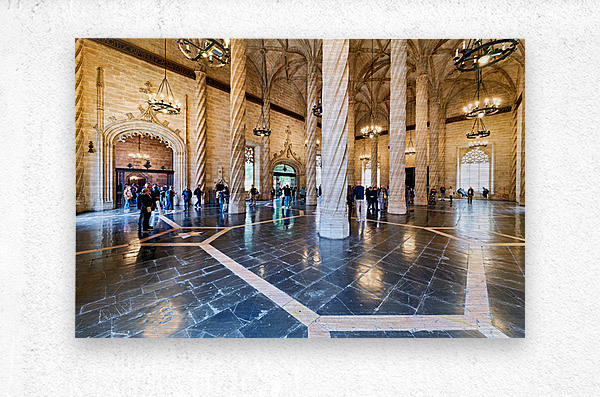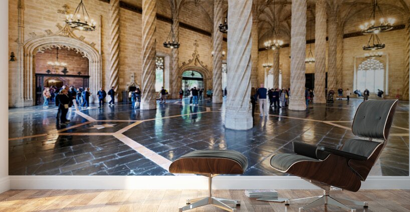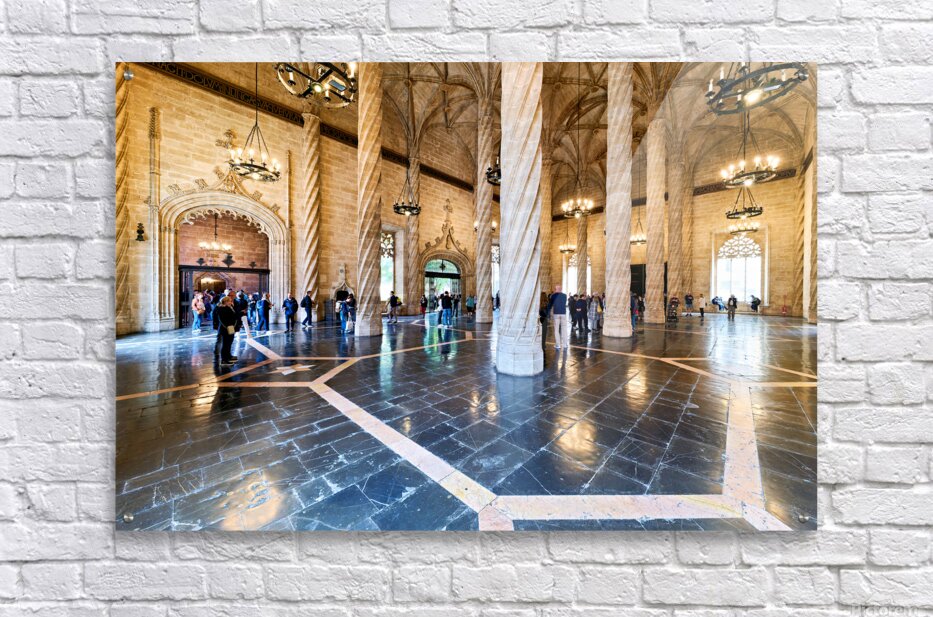 ABOUT THIS ARTWORK: VISITORS EXPLORE LONJA DE LA SEDA IN VALENCIA SPAIN