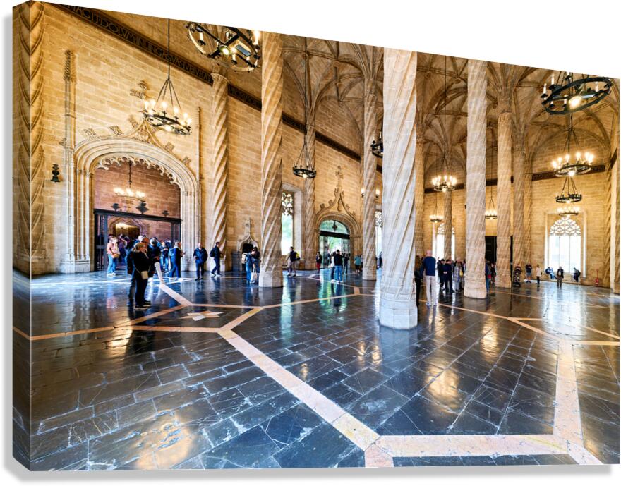 Get this artwork "Visitors explore Lonja de la Seda in Valencia Spain" in a framed print.