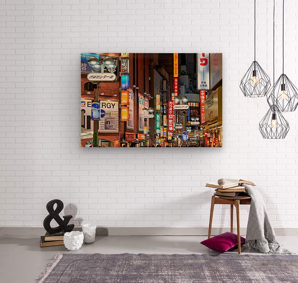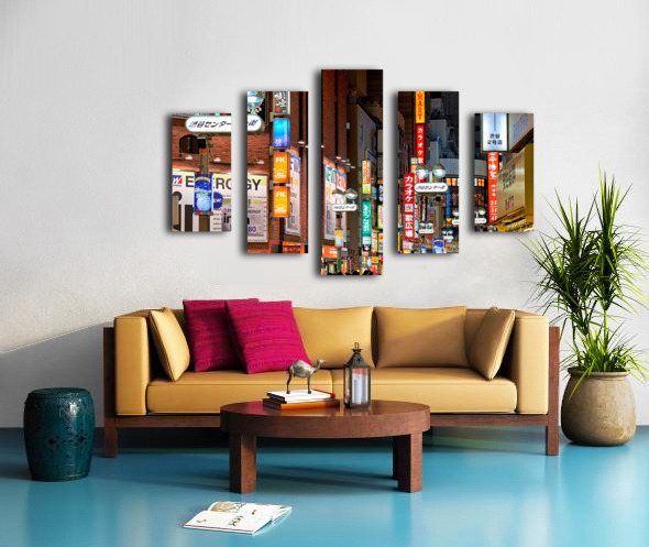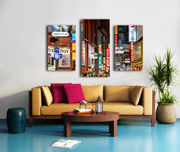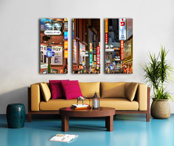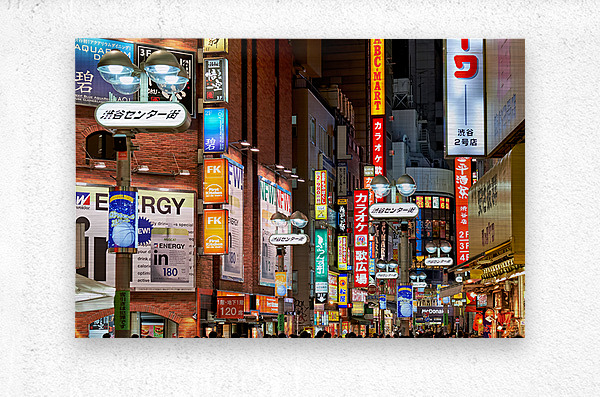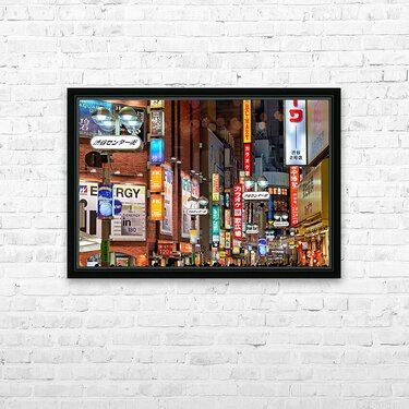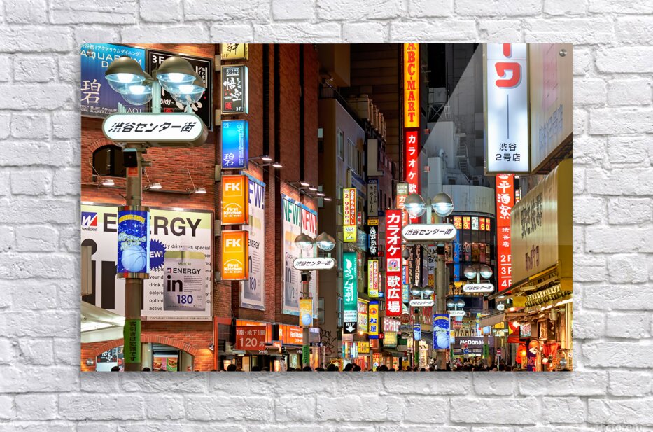 Get this artwork "Neon lights shine bright in Shibuya district at night in Tokyo" in a framed print.