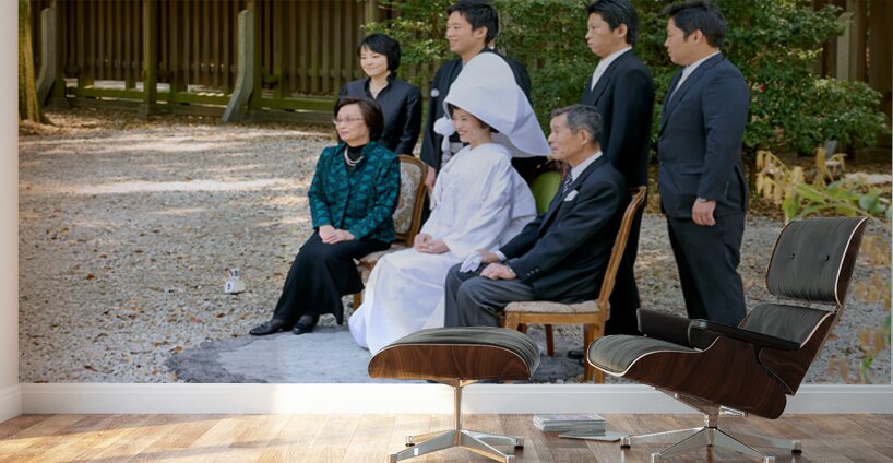 ABOUT THIS ARTWORK: TRADITIONAL WEDDING CEREMONY AT MEIJI JINGU SHINTO SHRINE IN TOK