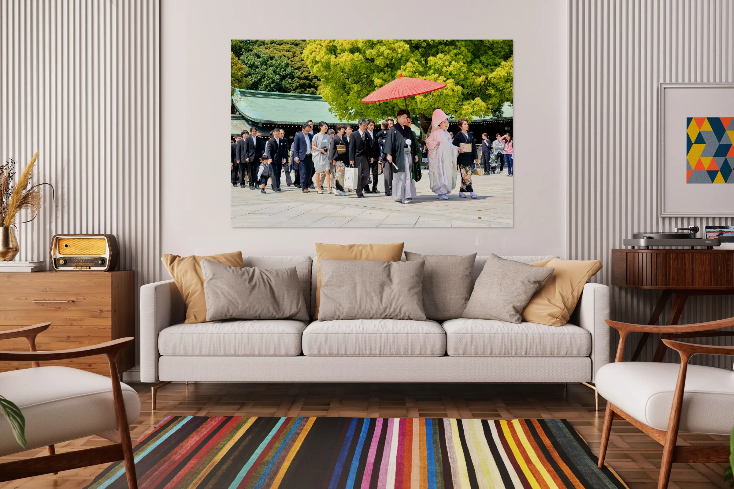 ABOUT THIS ARTWORK: TRADITIONAL WEDDING CEREMONY AT MEIJI JINGU SHRINE IN TOKYO JAPA