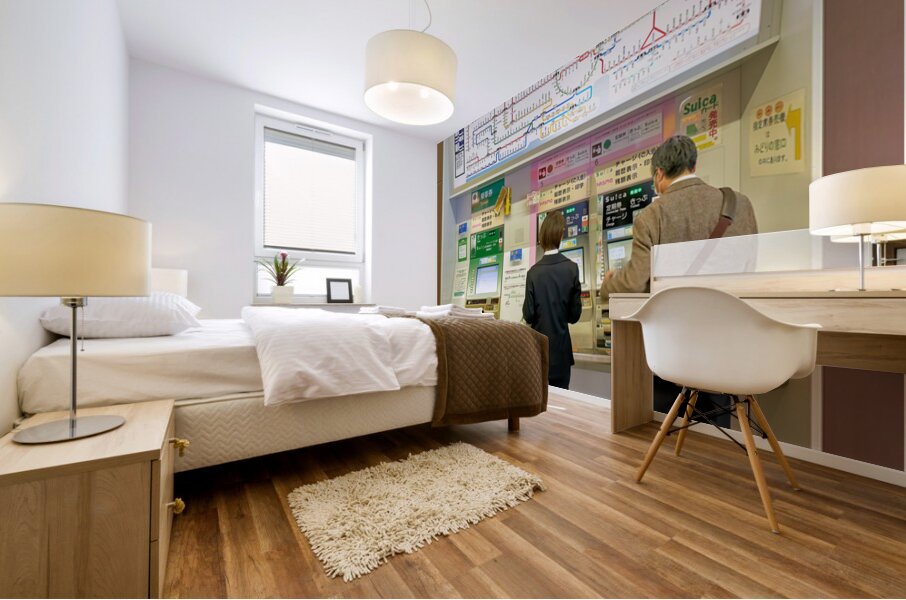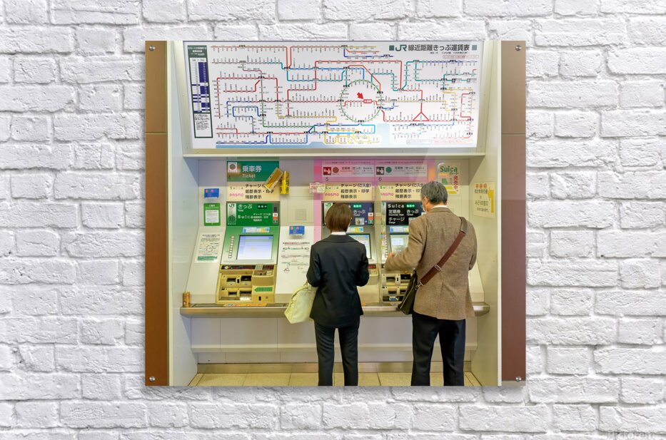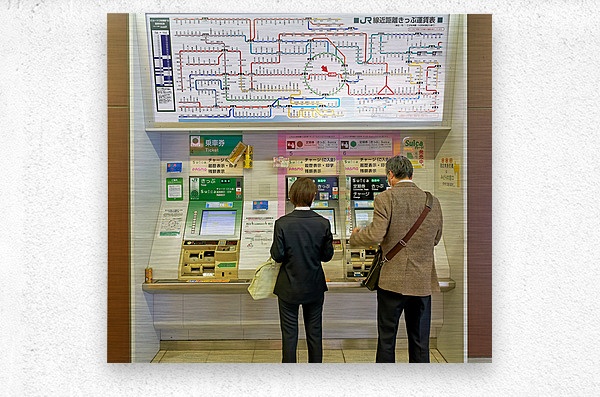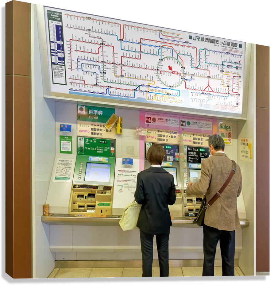 ABOUT THIS ARTWORK: BUYING TICKETS AT A METRO STATION IN TOKYO JAPAN DURING THE DAY