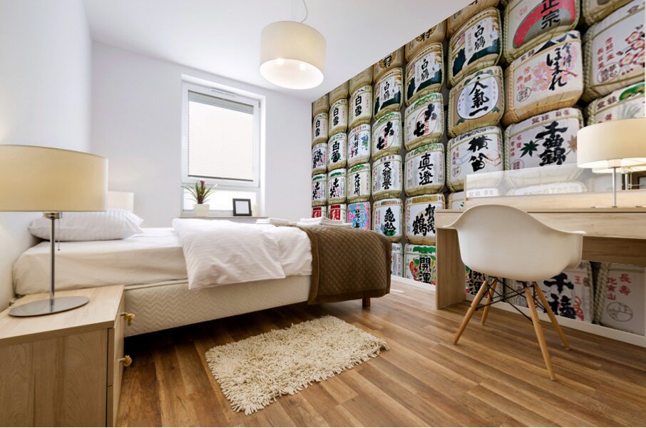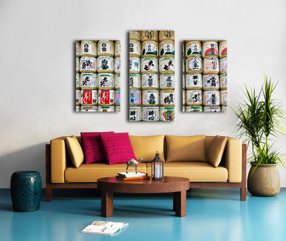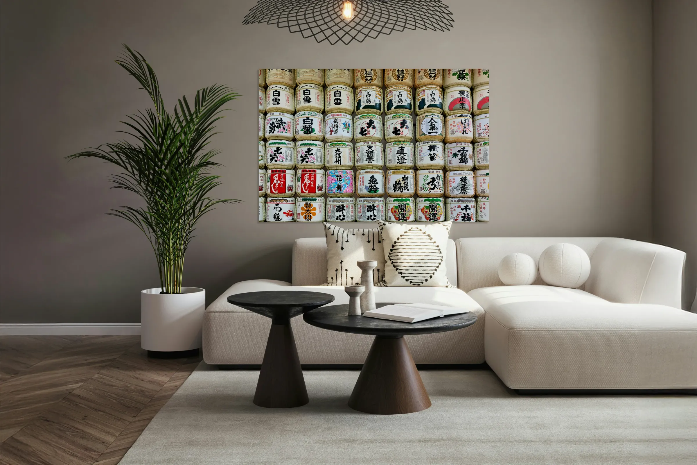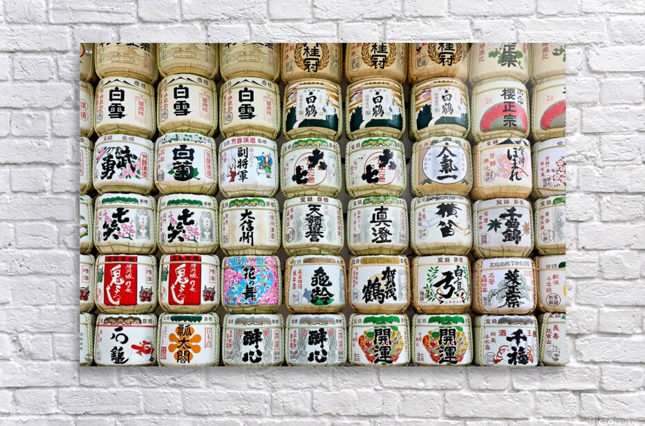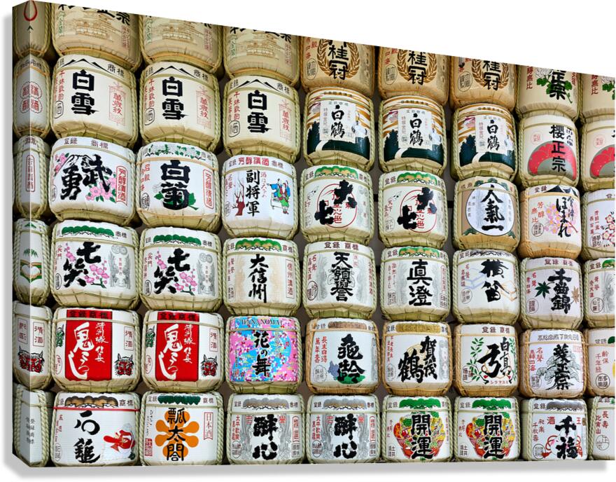 ABOUT THIS ARTWORK: SAKE BARRELS LINED UP AT MEIJI JINGU IN TOKYO JAPAN