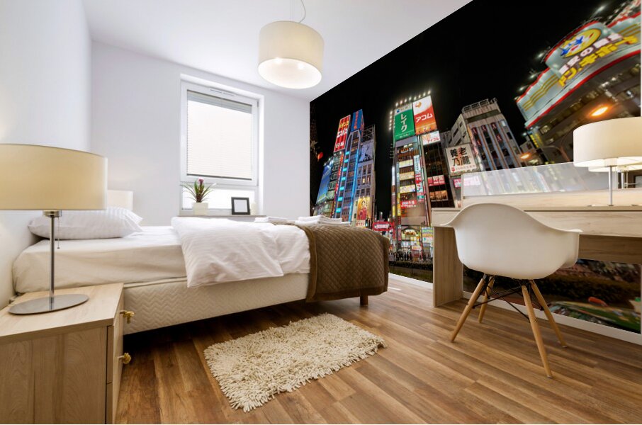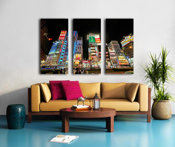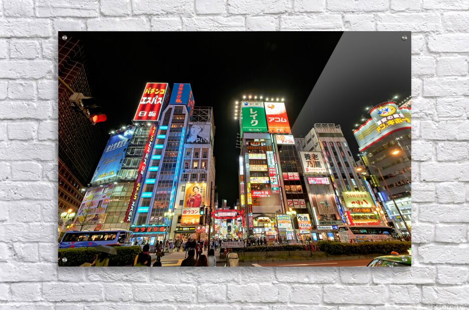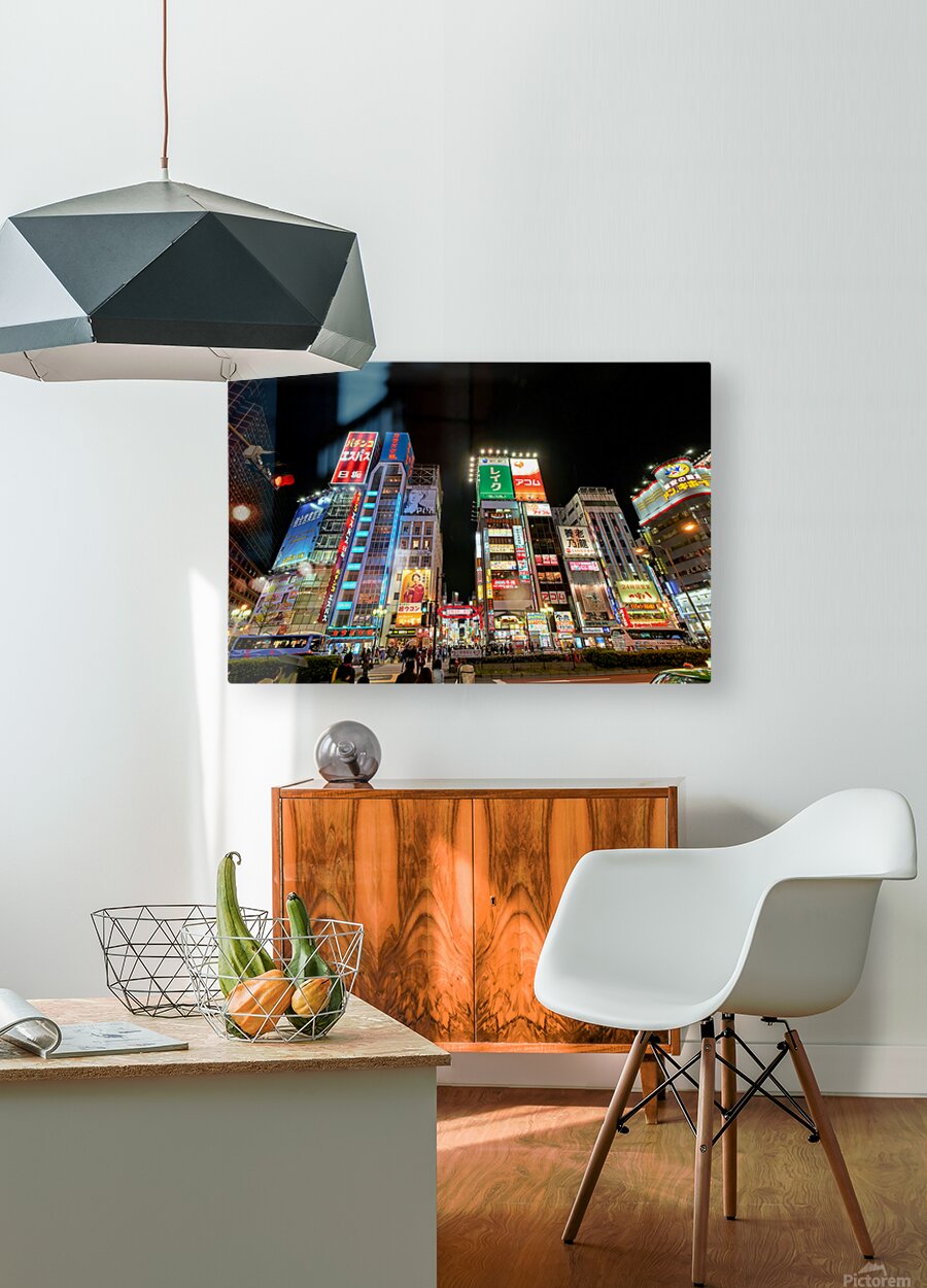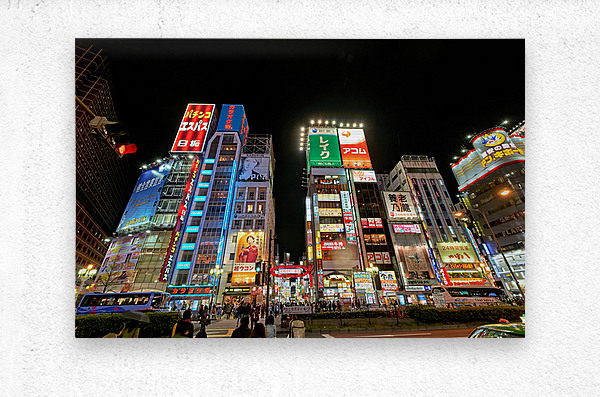 ABOUT THIS ARTWORK: NEON LIGHTS SHINE BRIGHT IN SHINJUKU DISTRICT OF TOKYO AT NIGHT
