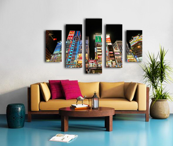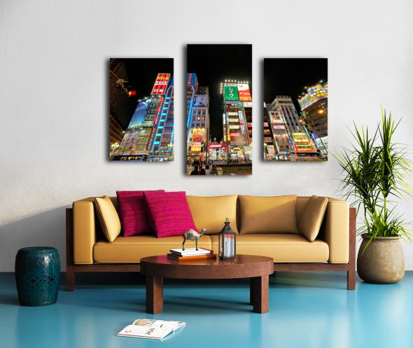 Get this artwork "Neon lights shine bright in Shinjuku district of Tokyo at night" in a framed print.