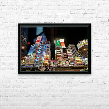 Neon lights shine bright in Shinjuku district of Tokyo at night Picture Frame Printing