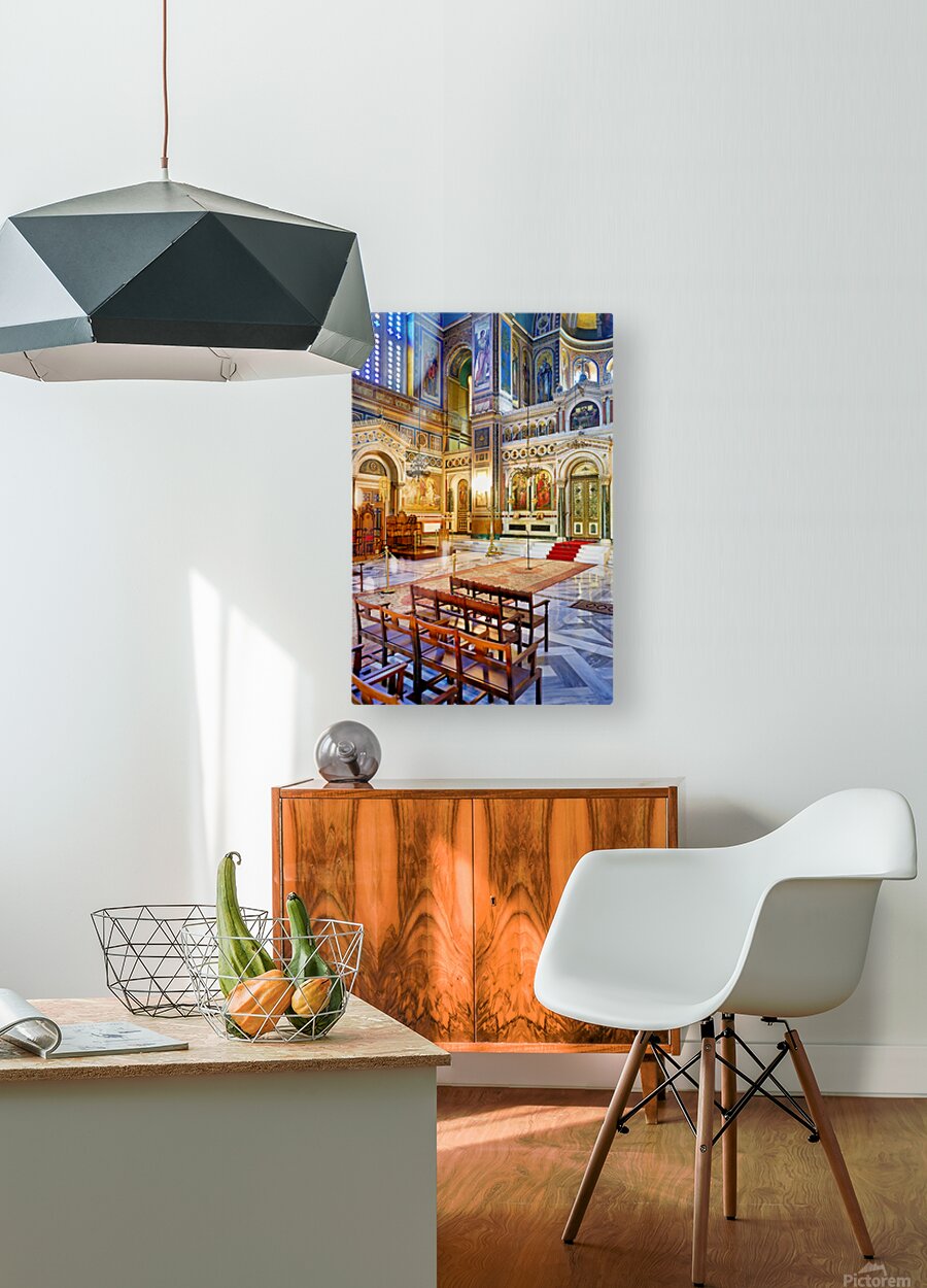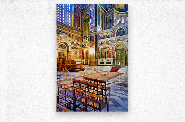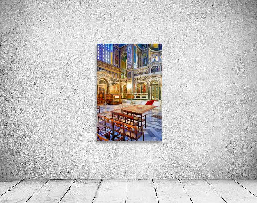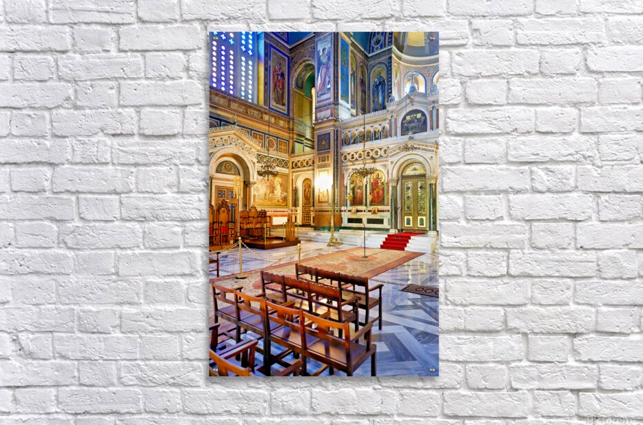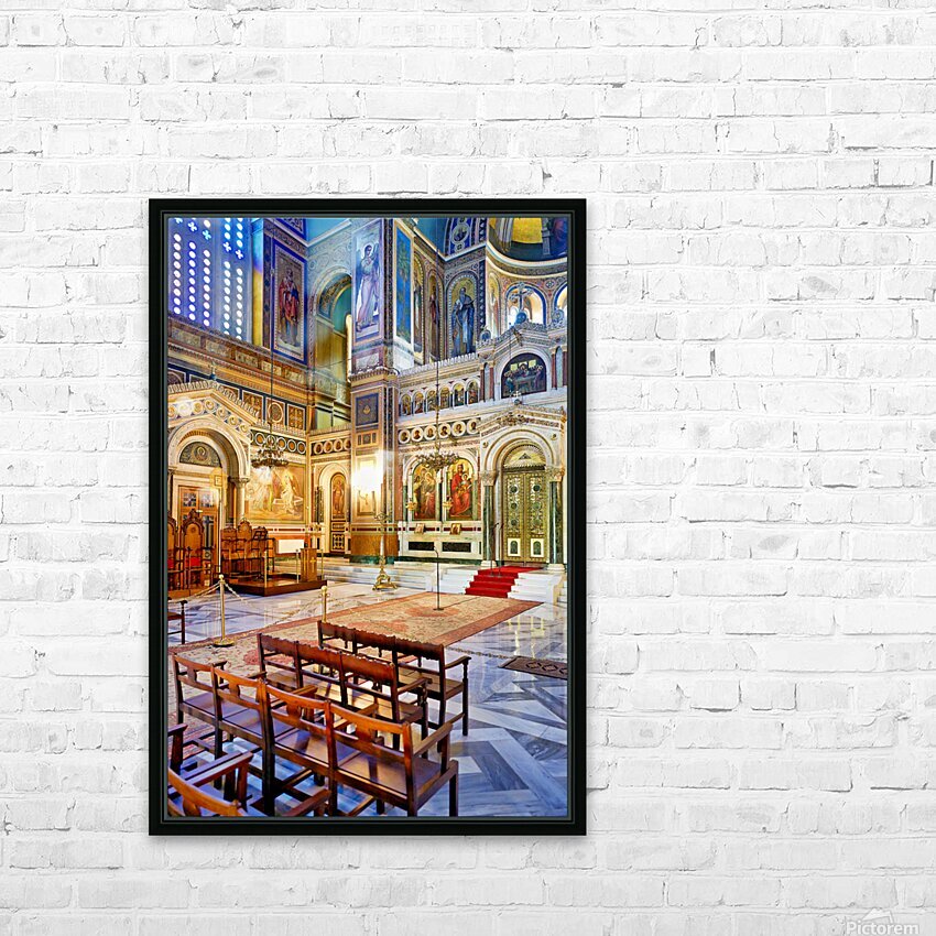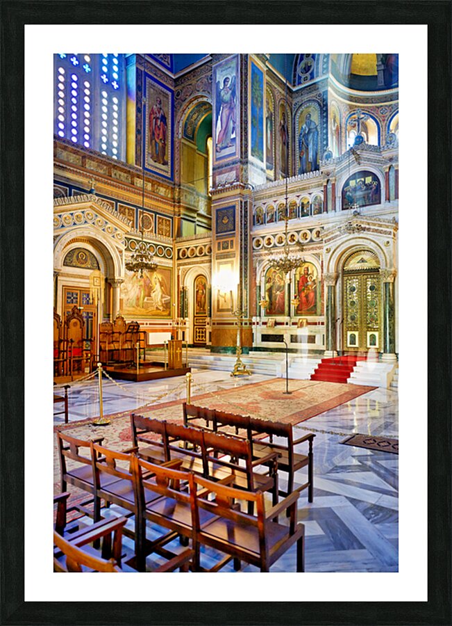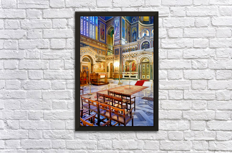 "Inside mitropolis cathedral in athens greece" in a framed print.
