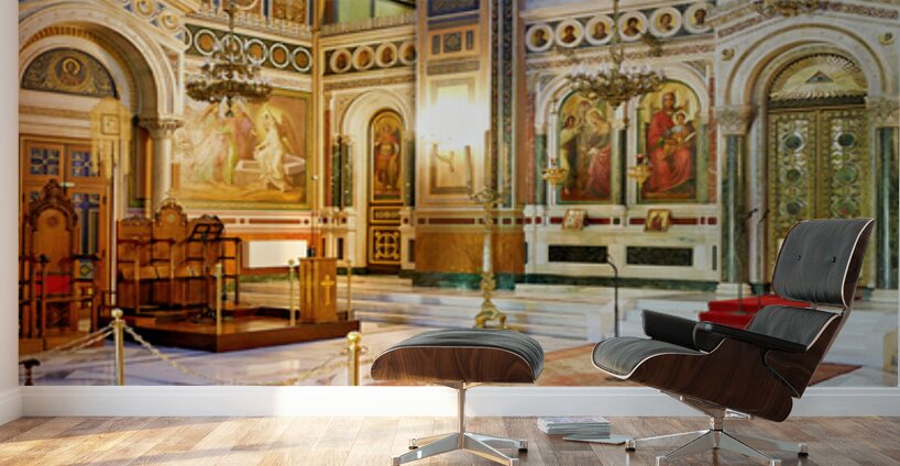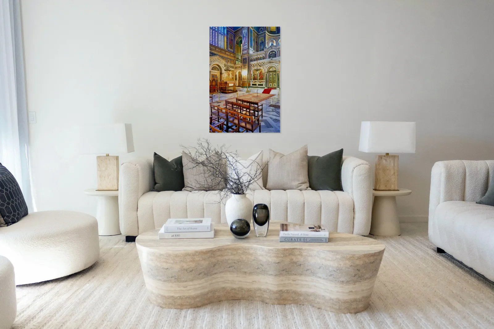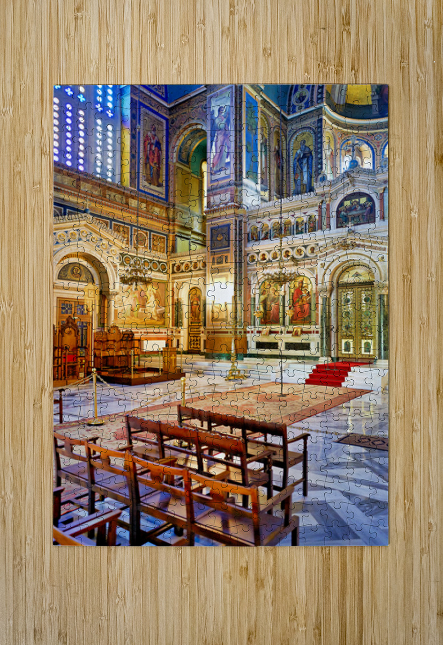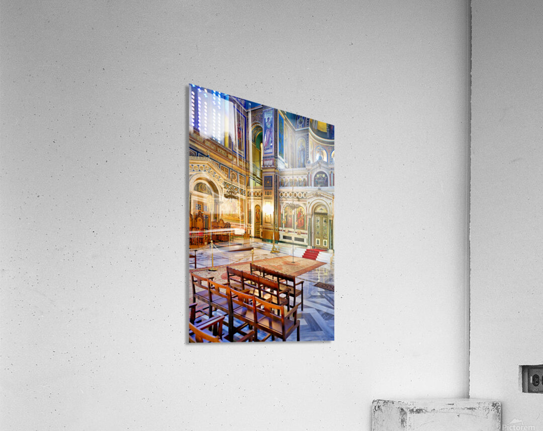 "Inside mitropolis cathedral in athens greece" in a framed print.