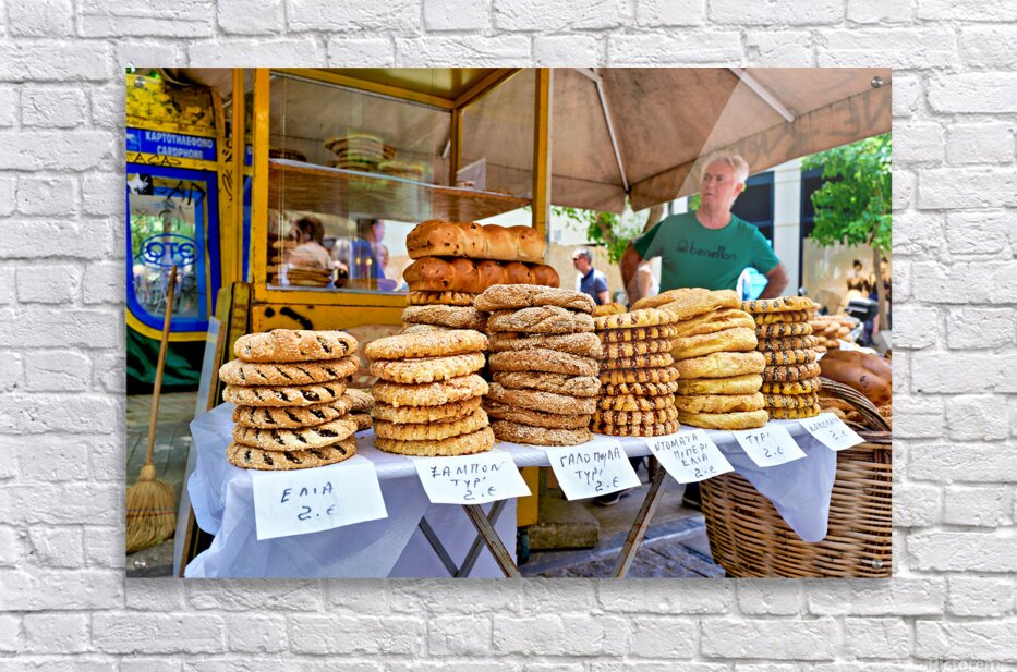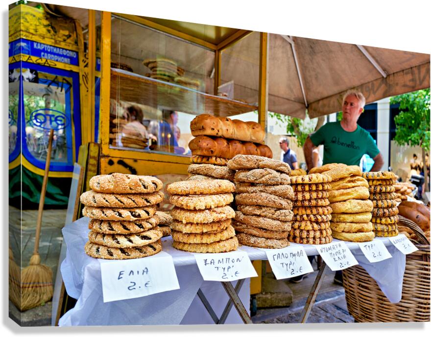 Get this artwork "Food stall offers baked goods in downtown Athens Greece" in a framed print.