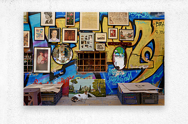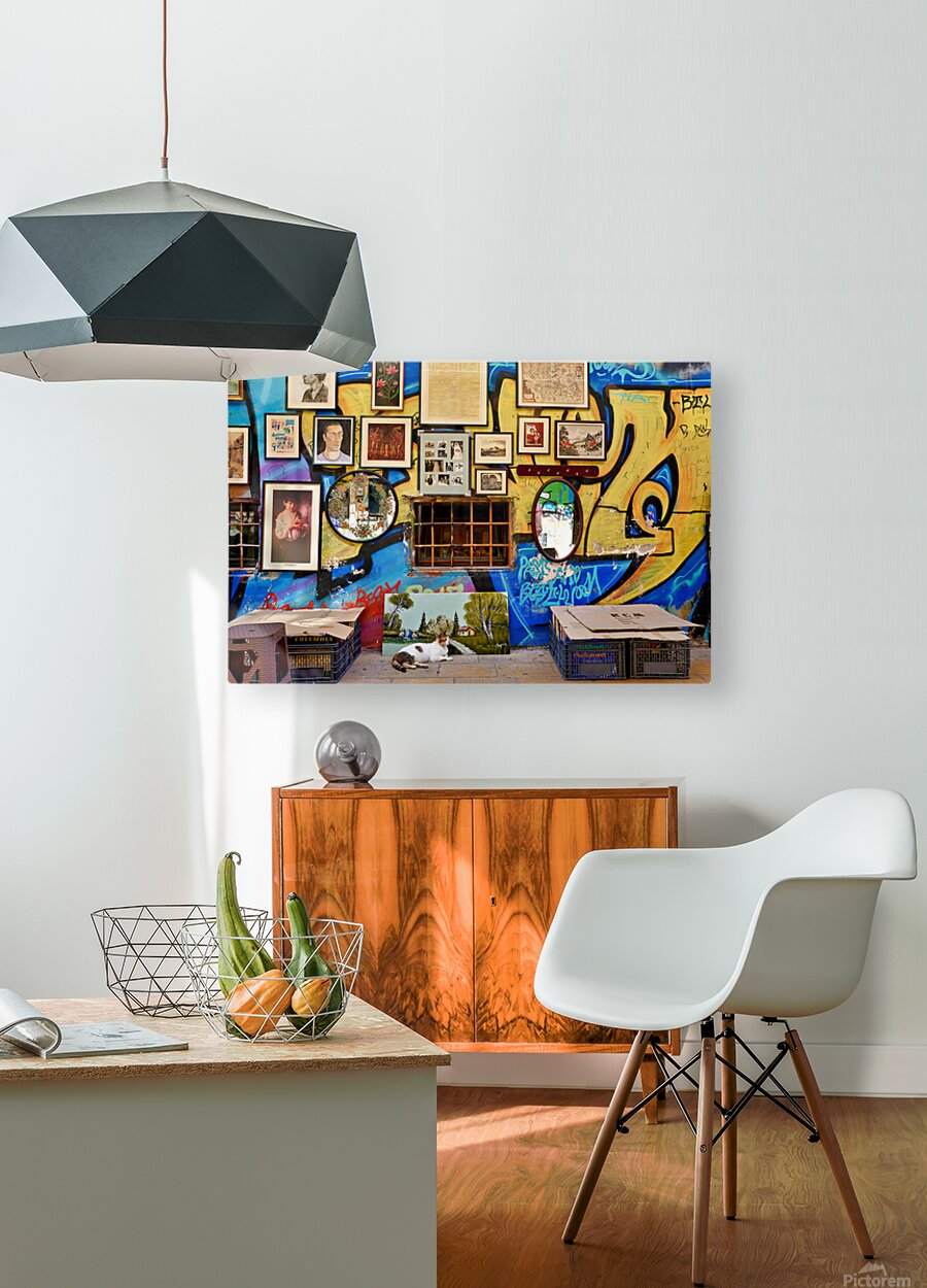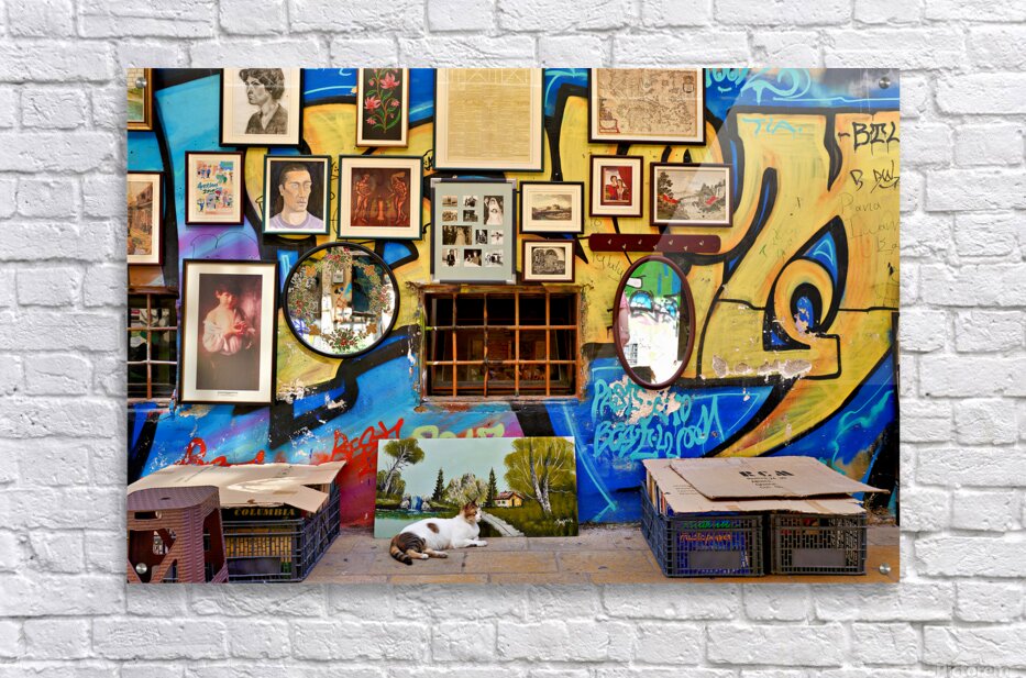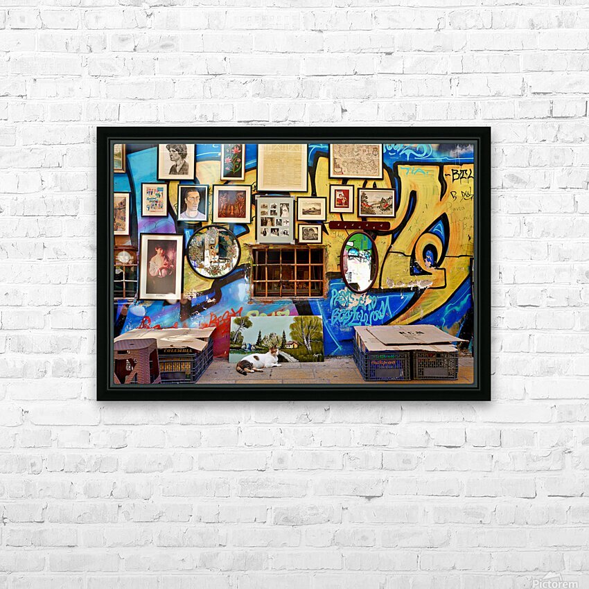 Get this artwork "Flea market scene in Monastiraki Athens with colorful wall art" in a framed print.