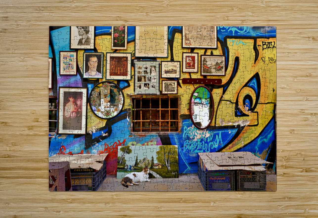 Flea market scene in Monastiraki Athens with colorful wall art Marco Brivio Puzzle printing