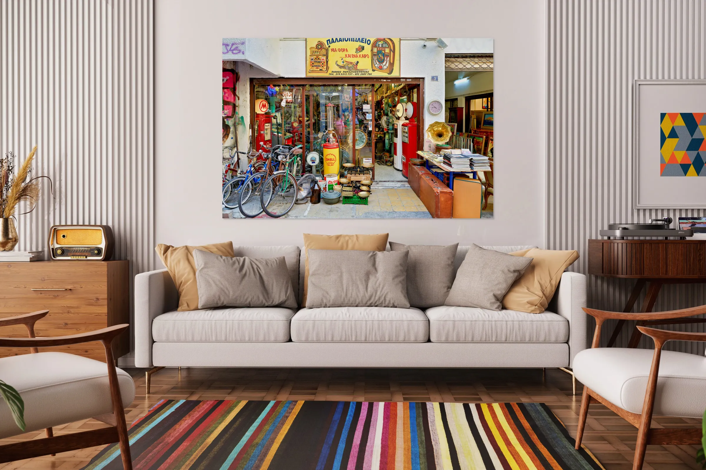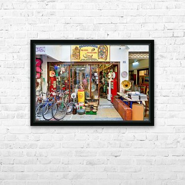 Flea market shopping in Monastiraki Athens Greece with vintage i Picture Frame Printing