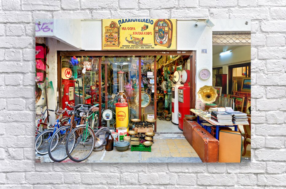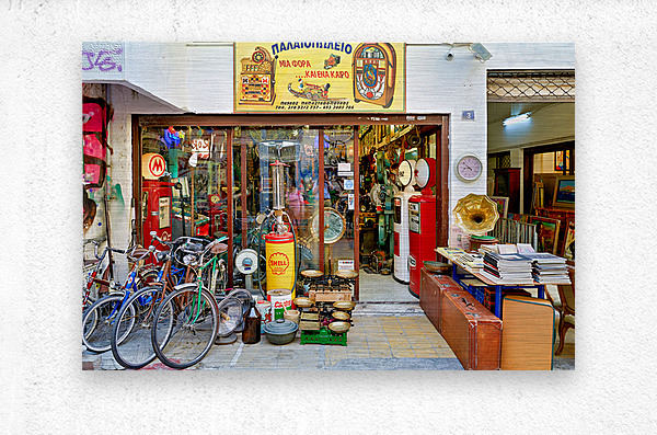 Get this artwork "Flea market shopping in Monastiraki Athens Greece with vintage i" in a framed print.