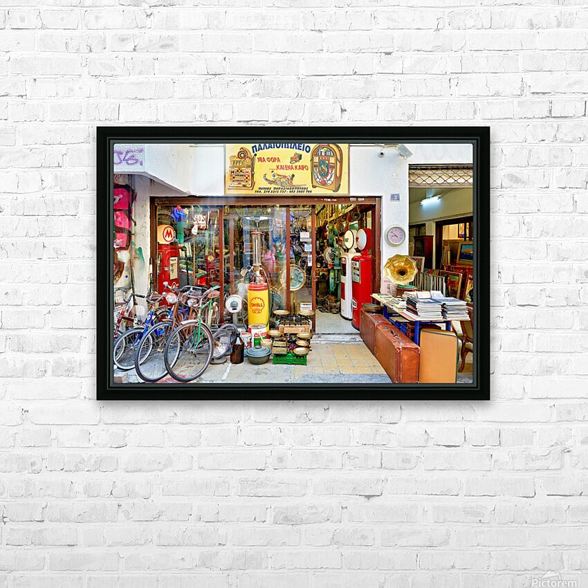 Flea market shopping in Monastiraki Athens Greece with vintage i Frame print