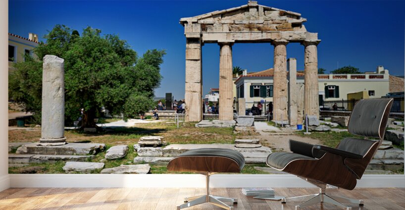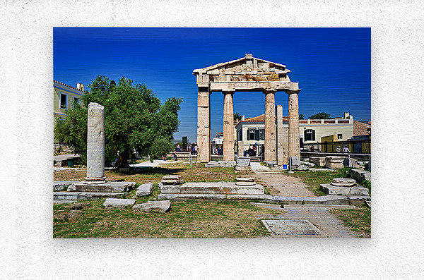 ABOUT THIS ARTWORK: ROMAN AGORA SITE SHOWS ANCIENT COLUMNS AND RUINS IN ATHENS GREEC