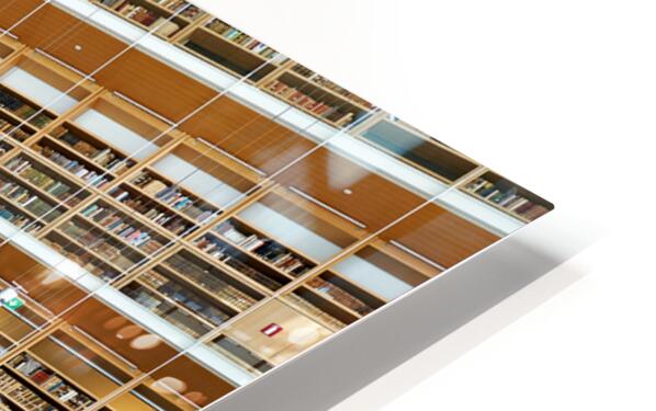 People explore the National Library in Athens Greece. The tall shelves hold many books. Visitors read and study in this modern space.