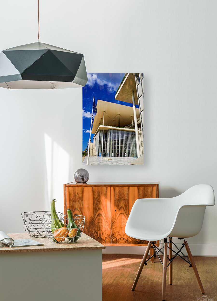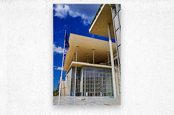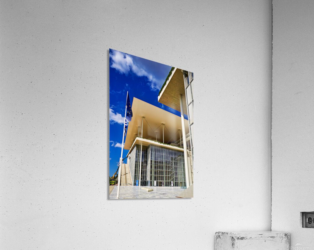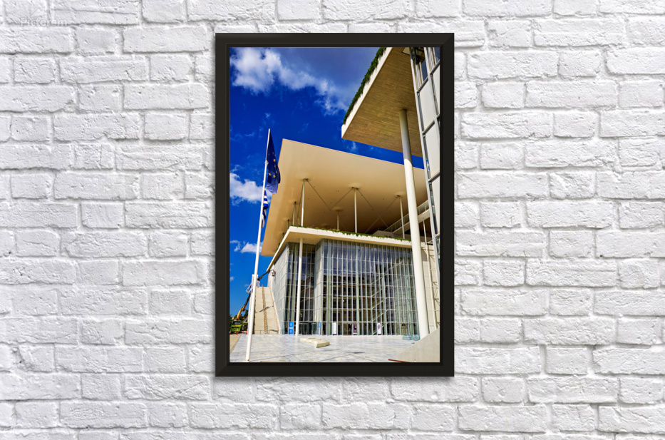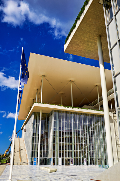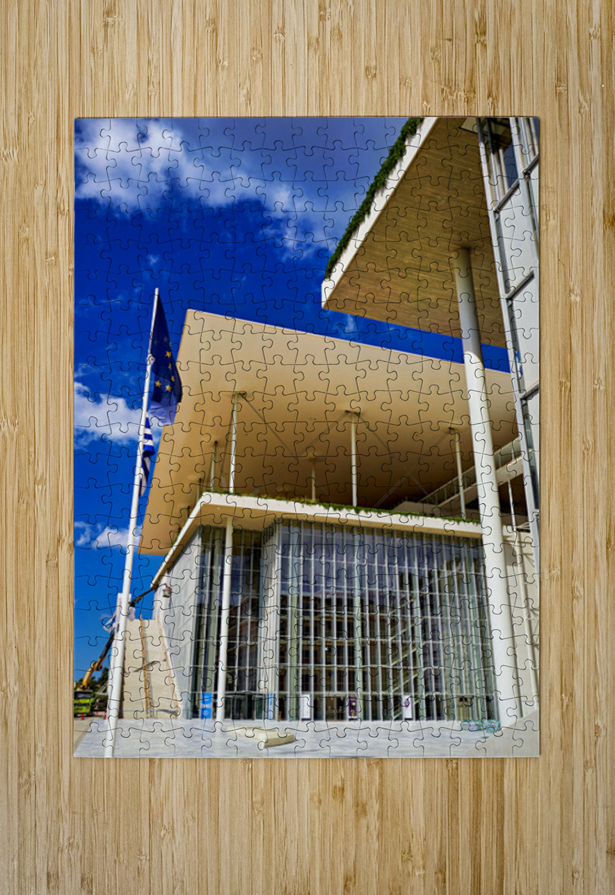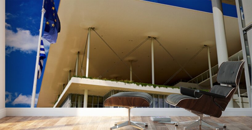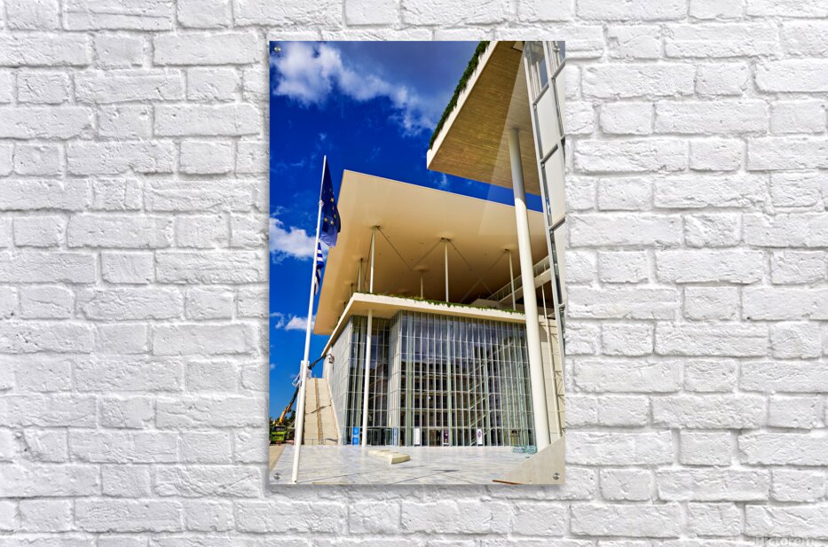 This structure stands in Athens featuring modern architecture and large glass windows. People visit to enjoy cultural events and activities.