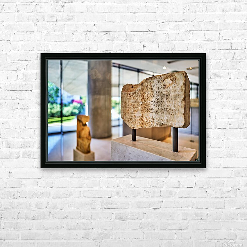 Exploring ancient inscriptions at the Acropolis Museum in Athens Frame print