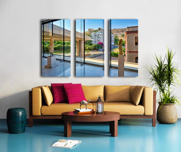 View of the acropolis from the acropolis museum in athens greece Frame print
