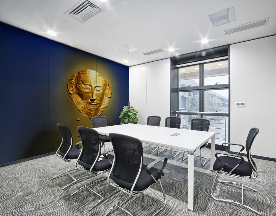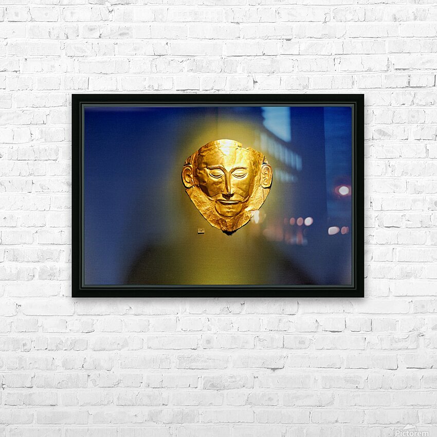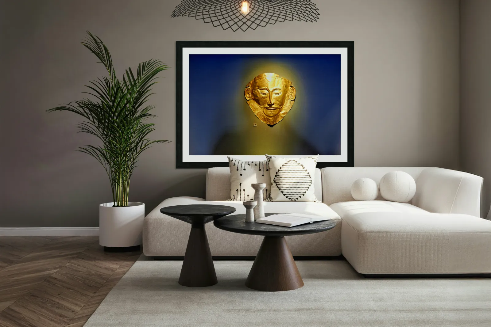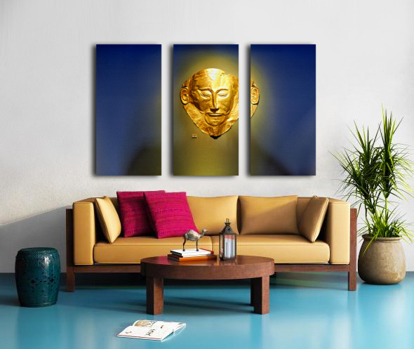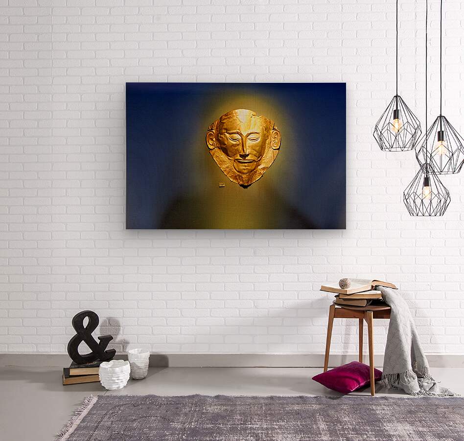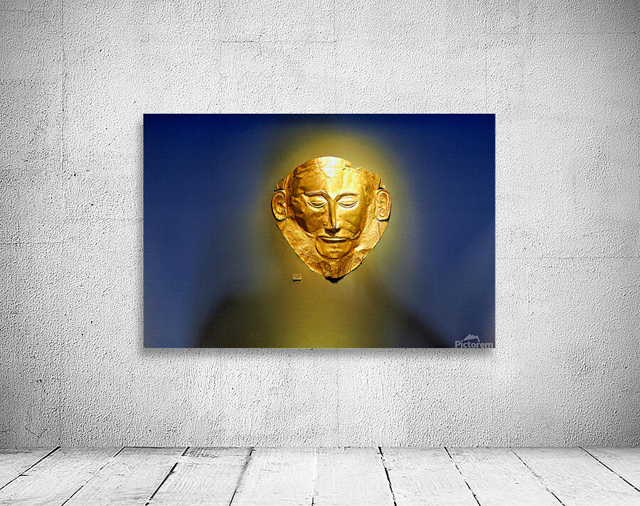 The Agamemnon golden mask is on display at the National Archaeological Museum in Athens Greece. Visitors admire this ancient artifact.