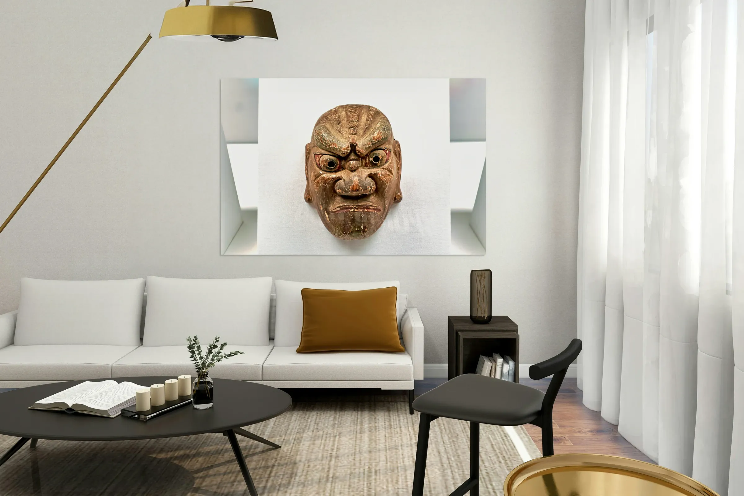 ABOUT THIS ARTWORK: ANCIENT JAPANESE MASK DISPLAYED AT HONKAN GALLERY IN TOKYO
