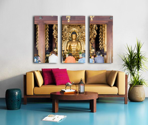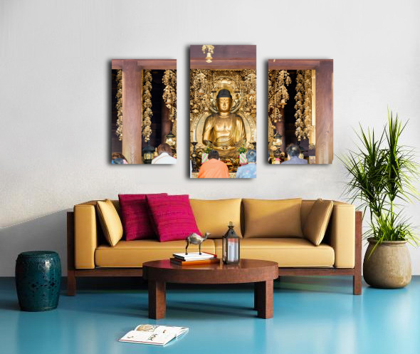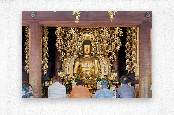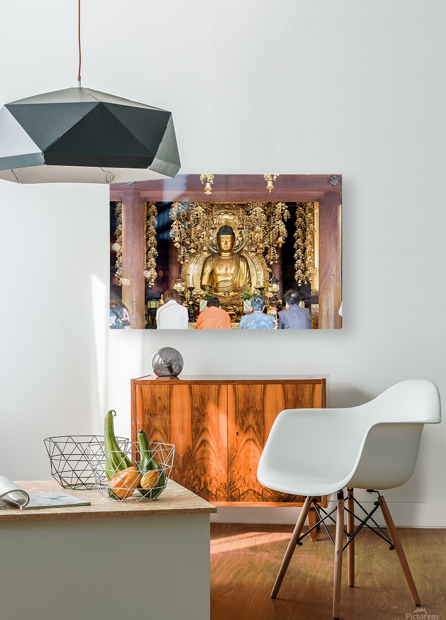 Get this artwork "Buddha statue inside Chion in temple in Kyoto attracts many visi" in a framed print.
